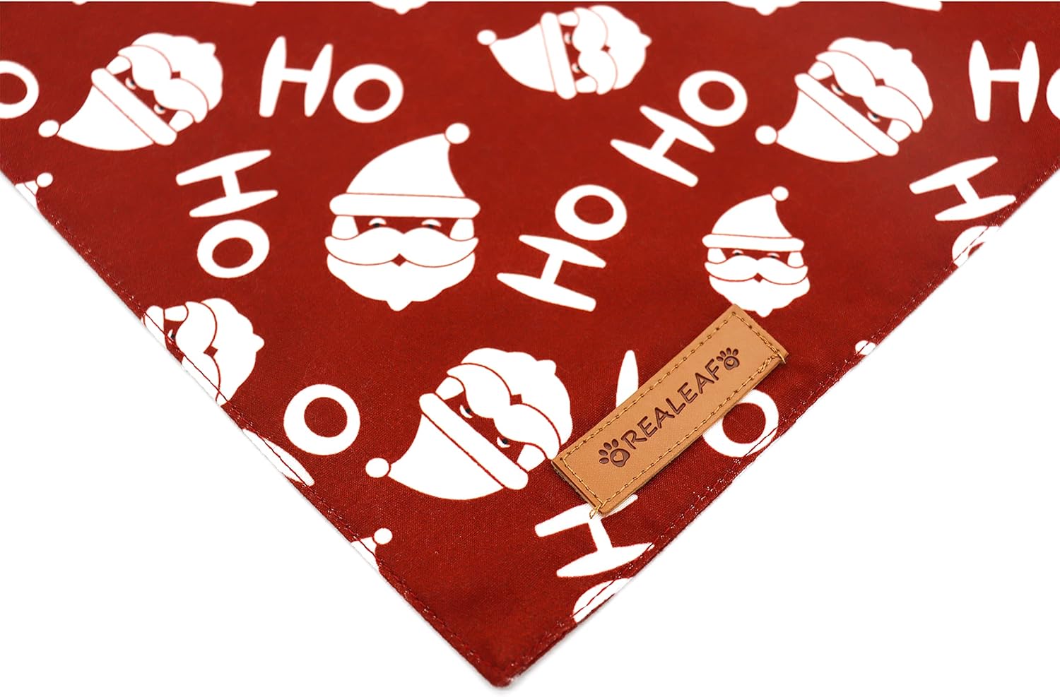 Realeaf Christmas Dog Bandanas 2 Pack, Christmas Tree and Santa Claus Dog Scarf for Boy and Girl, Premium Durable Fabric, Holiday Bandana for Small Medium Large and Extra Large Dogs (Large)