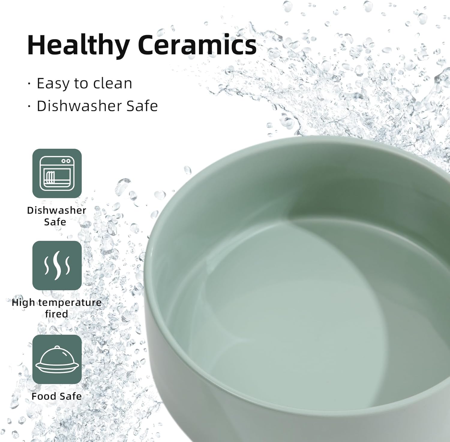 Ceramic Elevated Dog Bowls, Food and Water Bowls for Dogs, Puppy, Raised Dog Dish, Pet Feeder(6inch, 2 x Light Green + Stand)