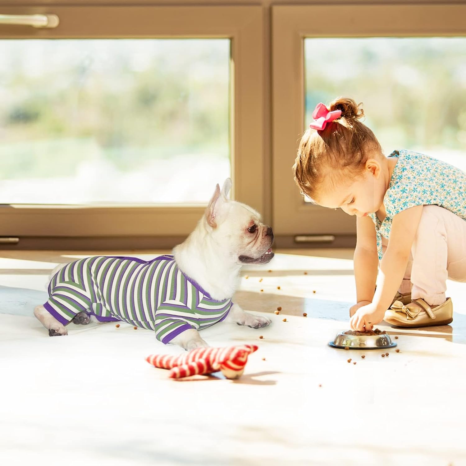 TONY HOBY Dog Pajamas, Knitted Dog Jumpsuit Shirt in Cold Weather, Dogs Surgical Recovery Suit for Small Medium Dogs (Purple&Green, Boy, M)