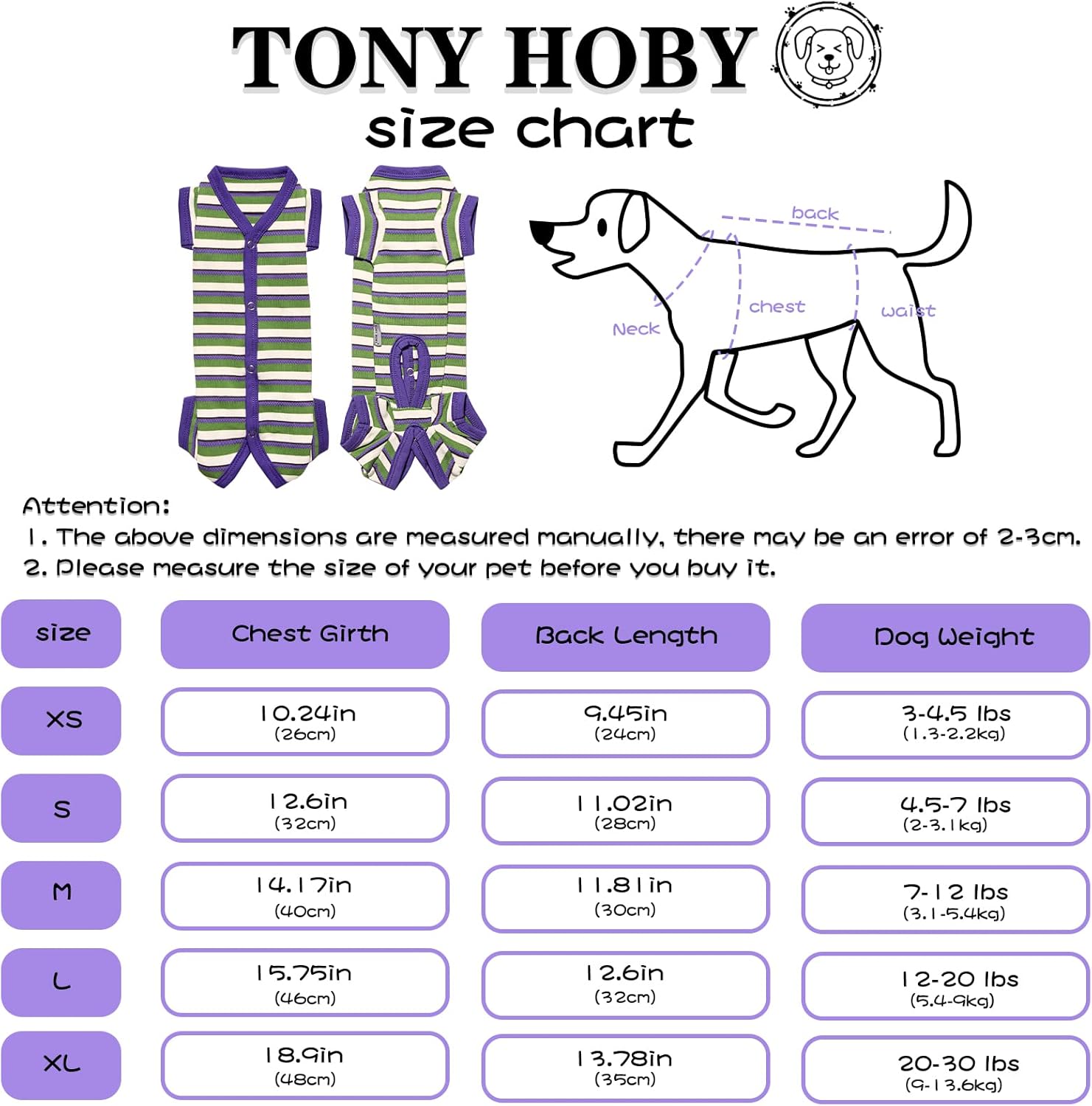 - 【Thoughtful Design】-TONY HOBY Female/Male Dog Pajamas are specially designed for dogs, which can protect the dog's belly well; high-quality metal buttons make it easier to put on and take off. Unique color design for men and women, more fashionable.