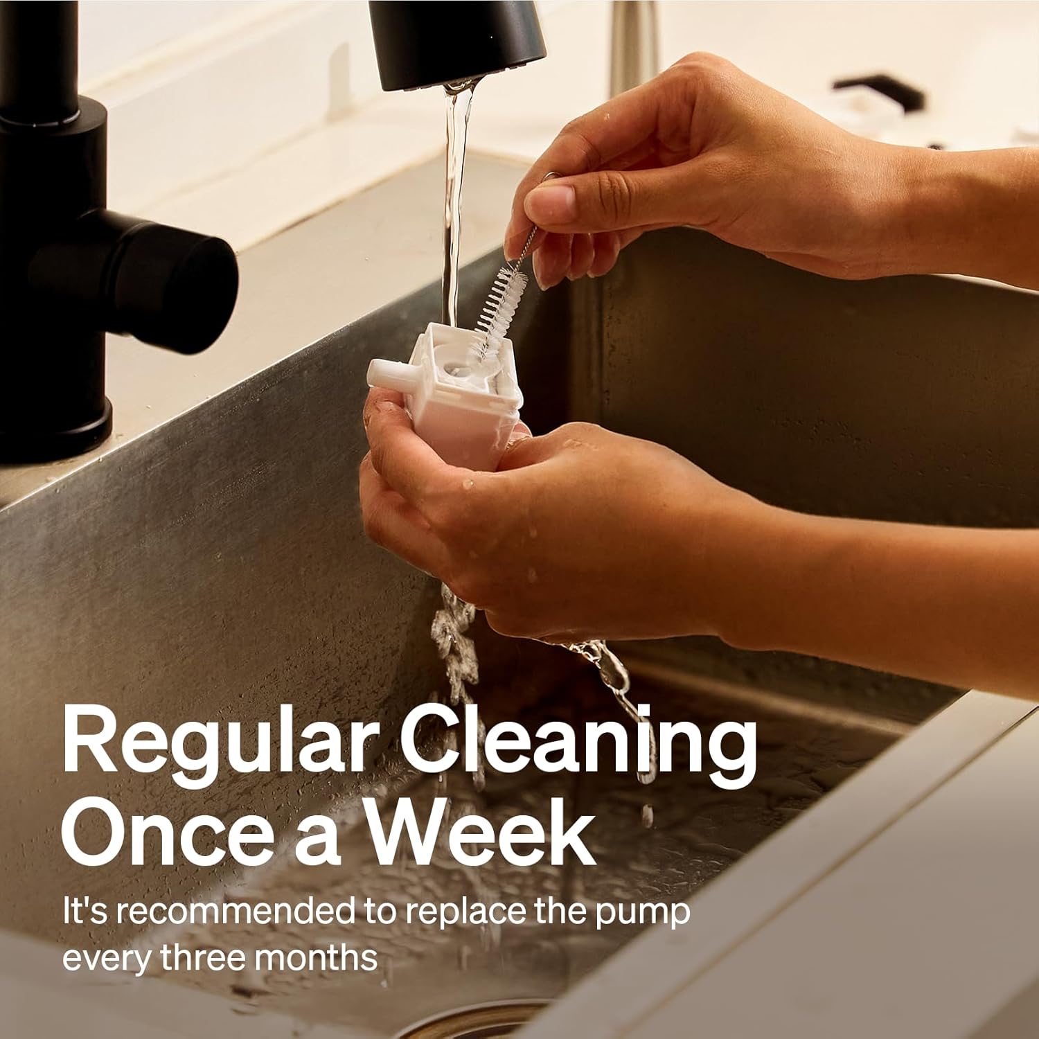 - Kind tip: If you are not in the habit of regular weekly cleaning, it is recommended to replace the pump every three months.