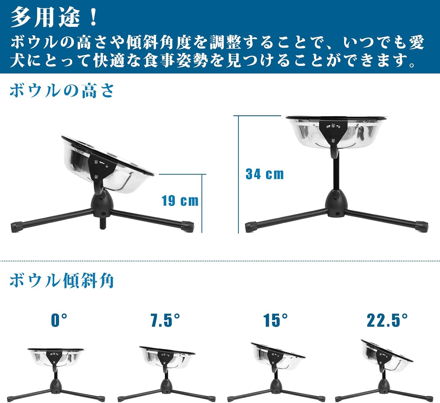 - 【Bowl Tilt Angles Adjustable】The tilt angle of this extra large dog bowl can be 0°, 7.5°, 15°, and 22.5 °. This design is extremely helpful to promote digestion, reduce bloating, neck strain while feeding, and strain on joints. It is great for dogs with arthritis or mobility issues. This personalized dog bowl is good at use as water bowl for dogs as well.