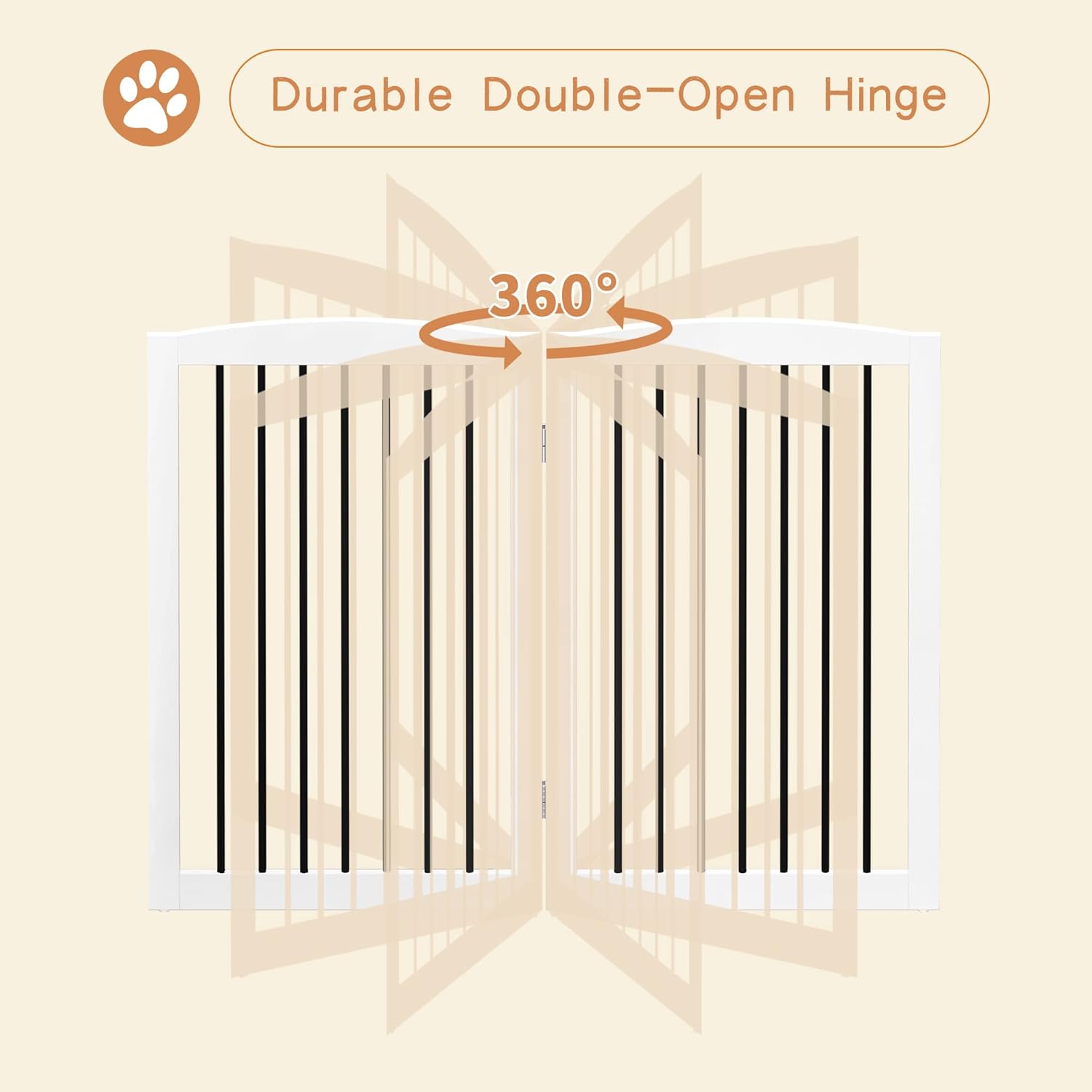 Freestanding Pet Gate for Dogs, Indoor Wooden Foldable Dog Gate for House, Extra Wide, Pet Fence for Stairs, Doorways, Halls, Support Feet Included, 120 Inch Wide, 6 Panels 32",White