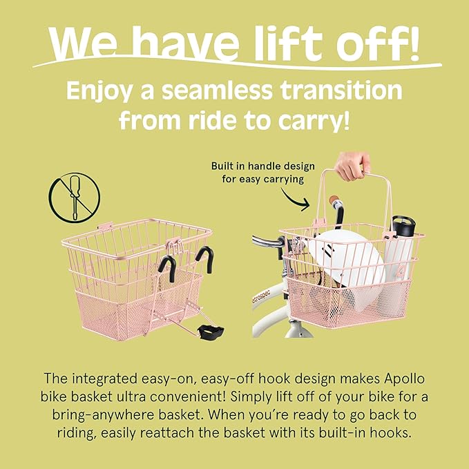 - SNAP ON & GO - This bicycle front basket attaches in seconds without tools, using smart integrated hooks. Pop it on for your morning commute, then detach instantly when you reach your destination