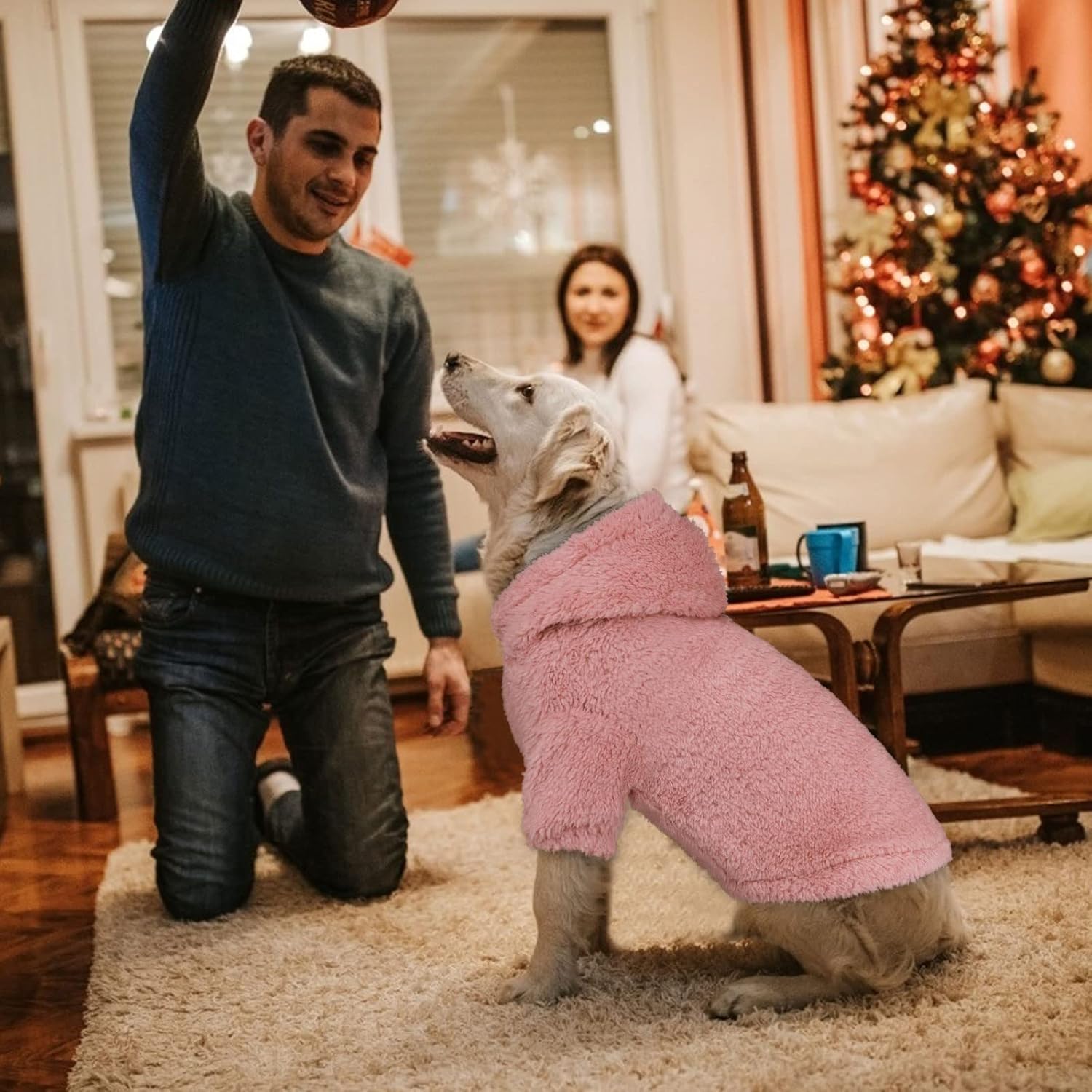 Fuzzy Dog Sweaters for Large Dogs Pet Hoodie Clothes Warm Soft Pet Coats Hooded Sweatshirt Dog Sweaters for Extra Large Dogs(Pink-XL)