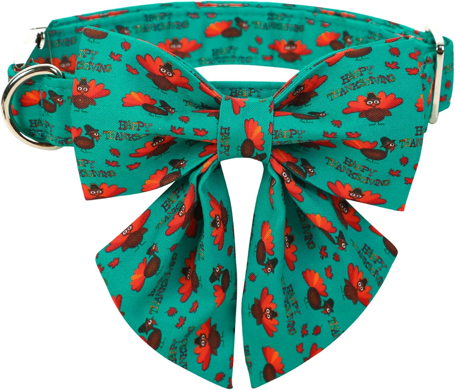 Lionet Paws Thanksgiving Day Dog Collar with Bowtie, Dog Sailor Bow Collar with Metal Buckle for Dogs, Adjustable Comfortable Dog Collar Girl Gift, L, Neck 16-24 in