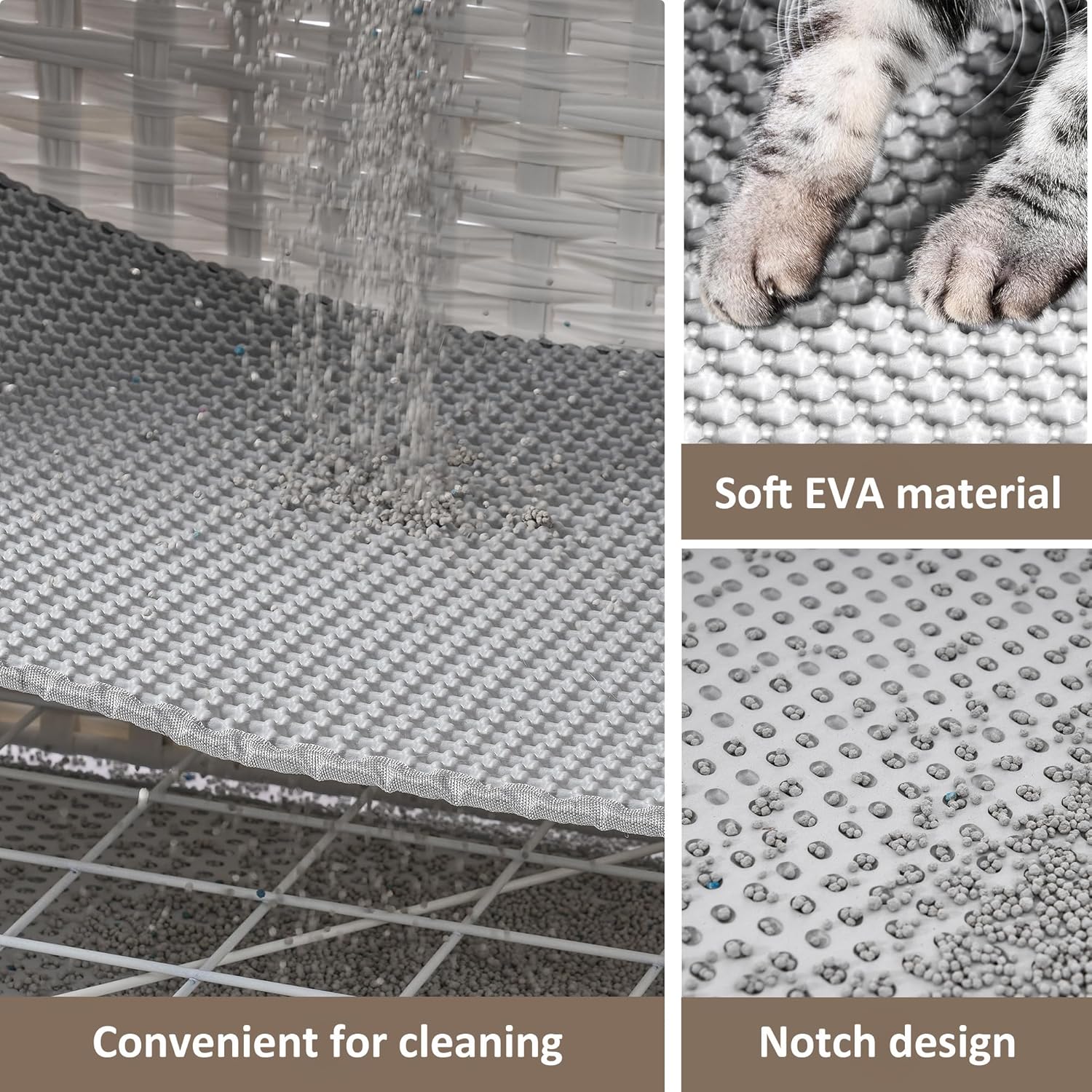 - 【Easier Cat Care】The cat washroom is built with soft litter mat which allows cats to walk comfortably. More importantly, the litter mat is designed with large holes so that the scattered cat litter can drop on the bottom mat. And then you can pull the bottom mat out, dump the scattered cat litter, saving you the trouble of cleaning up scattered cat litter every day.