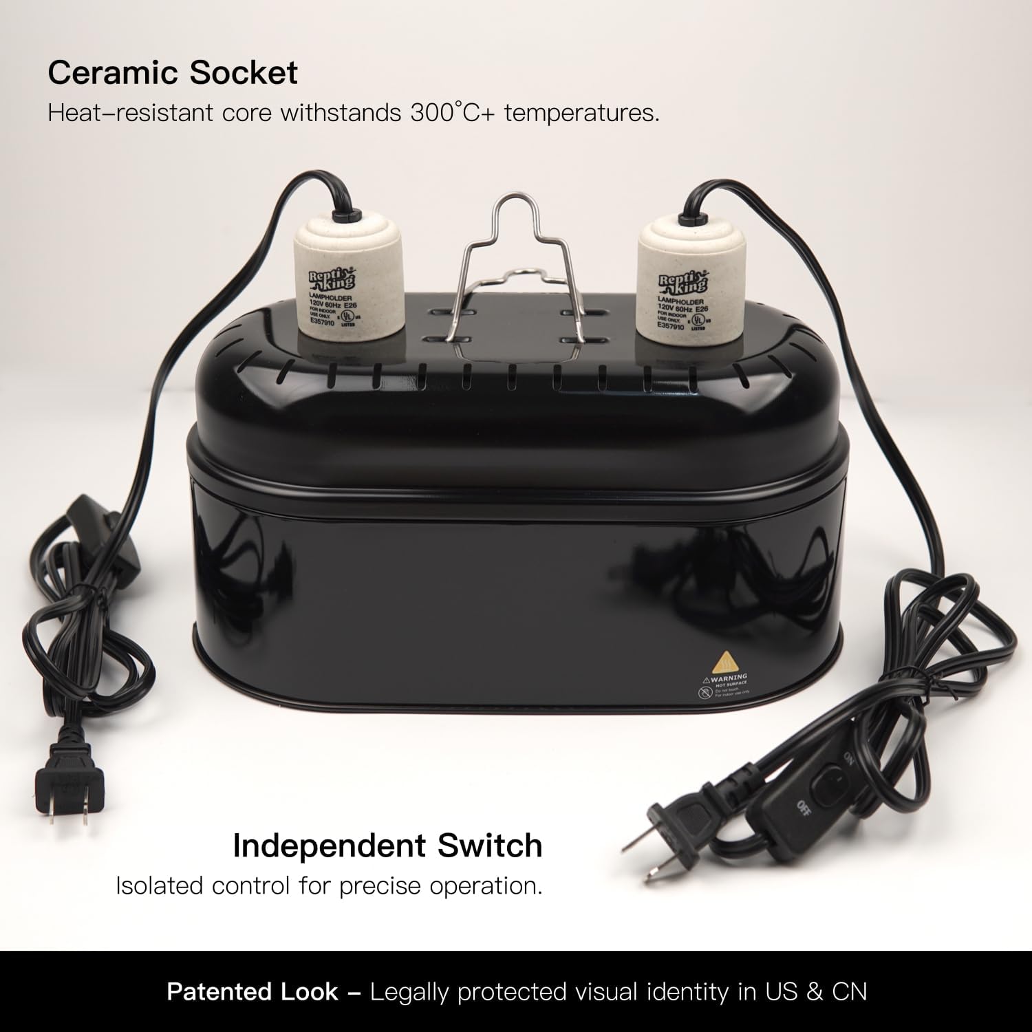 - The Dual Light Dome with heat resistant ceramic socket can accommodate either reptile heat lamp and UVB reptile light (Max. 150W each).
