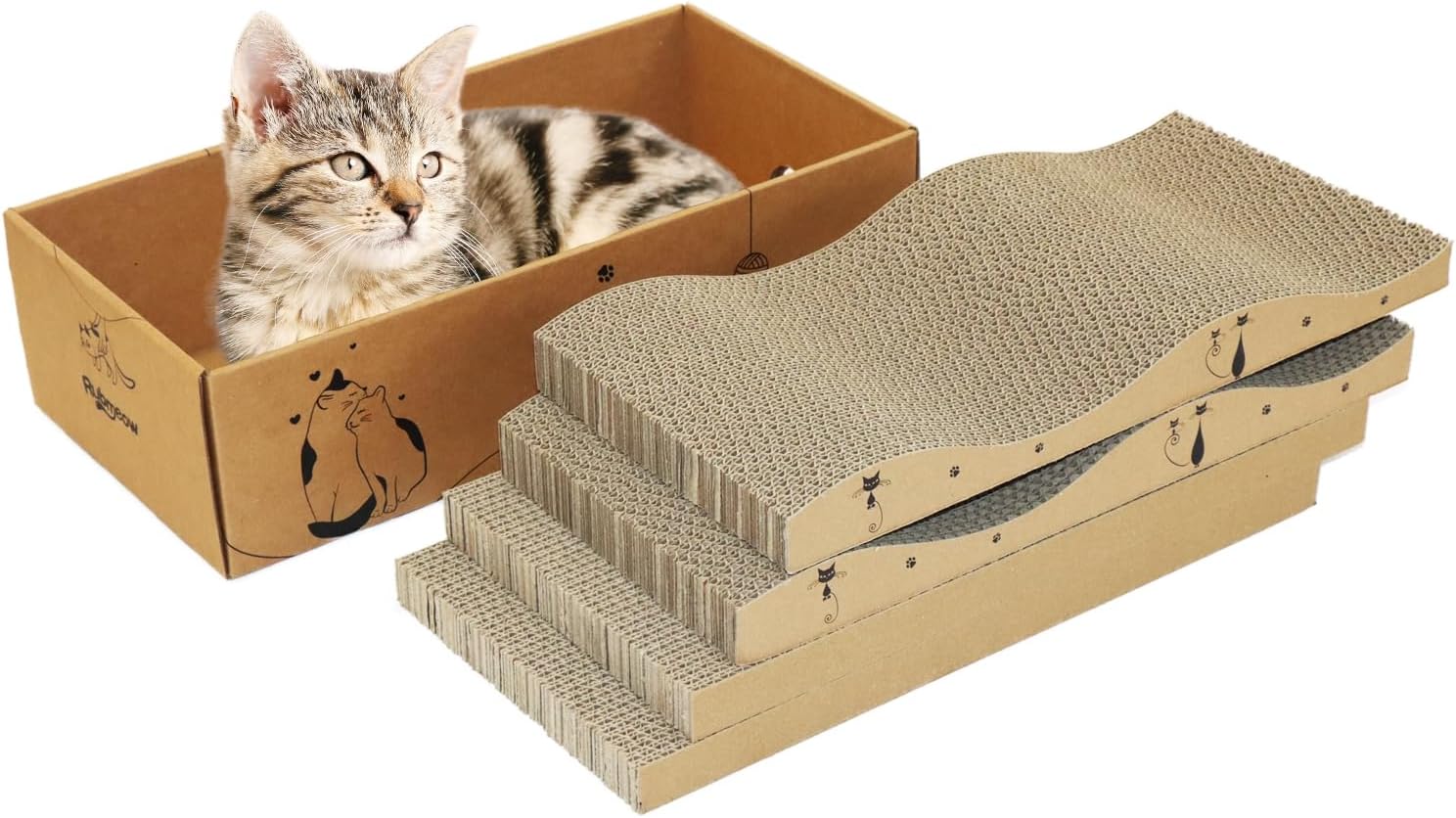 Cat Scratcher Cardboard Pad Scratch Box,4pcs Scratching Board for Indoor Cats,Reversible Durable with Catnip