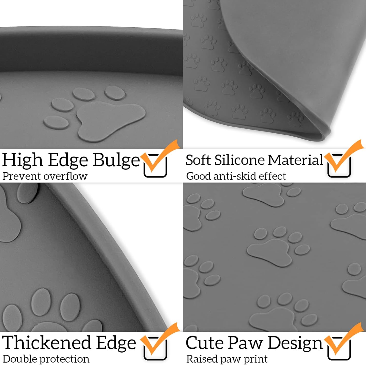 KPWACD Pet Feeding Mat for Dogs and Cats, Silicone Dog Placemat Non-Slip Waterproof Bowl Mats Prevent Food and Water Overflow, High-Lips Puppy Dish Tray Mat Suitable for Large Medium Small Pets, Grey