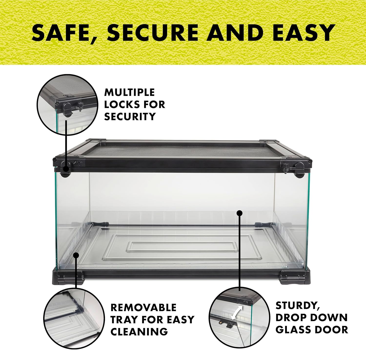 Zilla QuickBuild Reptile 10 Gallon Glass Terrarium Habitat with Bedding Tray For Geckos, Snakes, Lizards, Frogs, Turtles, and Tortoises, 20" x 12" x 10"