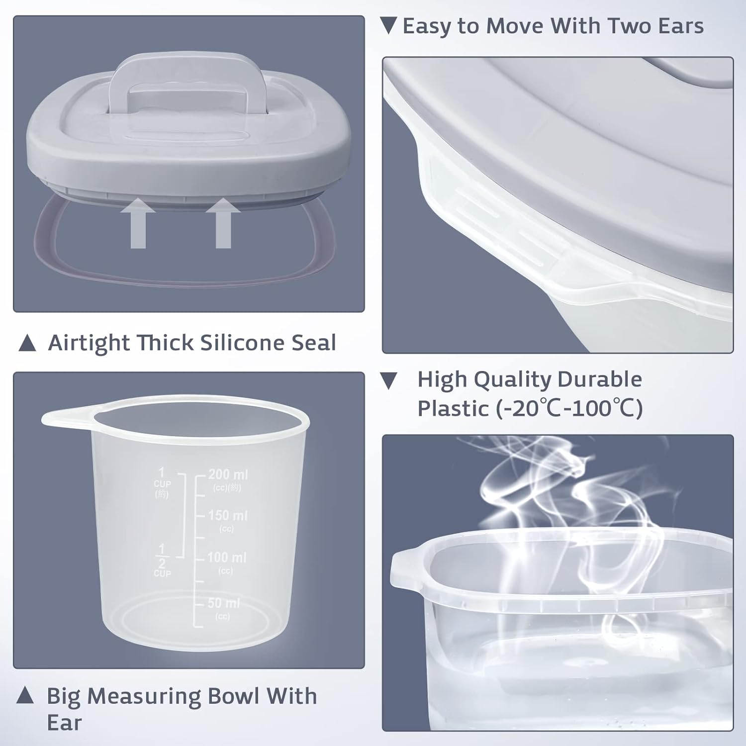 - Easy Lock Lids to Save Your Time: Lift up the handle and easily open the lid with one hand. Push down the handle to seal the container tightly. You can open and close it fastly. To keep food fresh With special sealing mechanism and silicone seal. They will protect your food from air and water