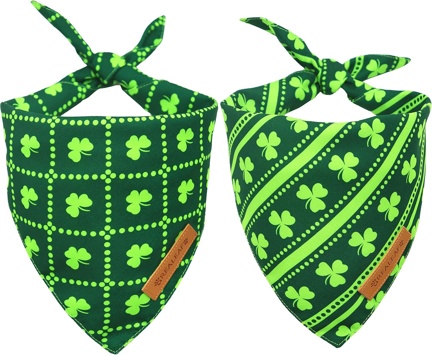 Realeaf St. Patrick's Day Dog Bandanas 2 Pack, Reversible Green Shamrock Pet Scarf for Boy and Girl, Premium Durable Fabric, Holiday Bandana for Small Medium Large and Extra Large Dogs (Large)