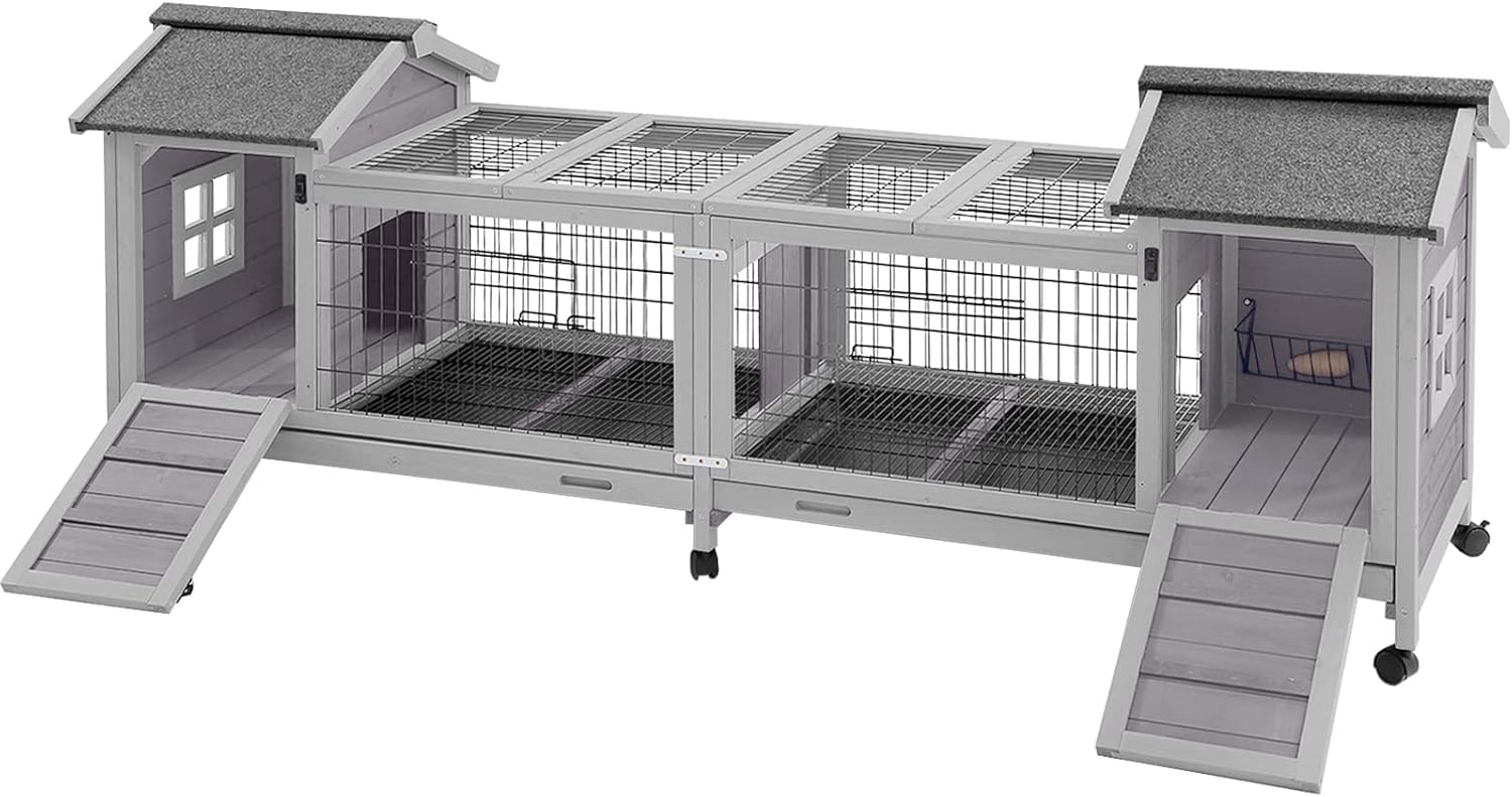 - 10.4 ft² Spacious Living Area: Rabbit hutch with two sleeping house and run, 80.12" from end to end, provides a far and long distance to hop