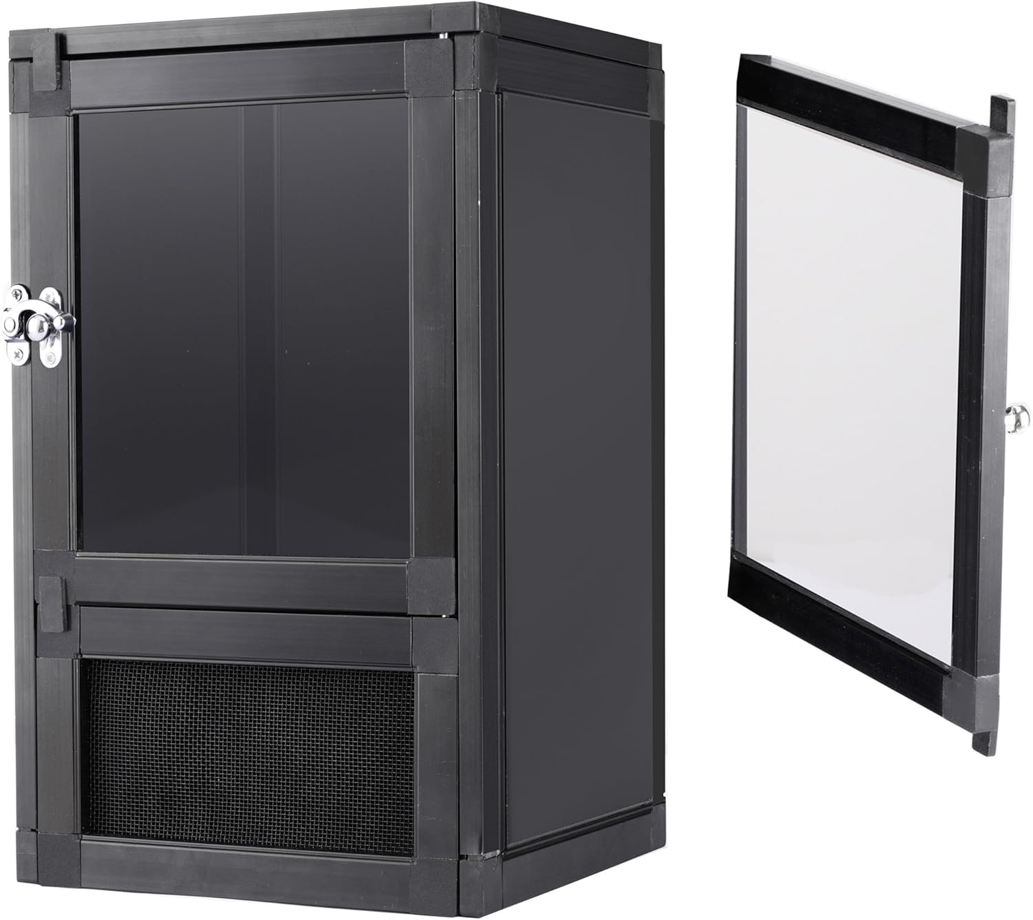 8" x 8" x 12" Small Reptile Cage Hatching Habitat, Screen & Acrylic Doors, Ventilated Terrarium for Lizards, Snakes, Frogs, Easy Assembly, Two Doors