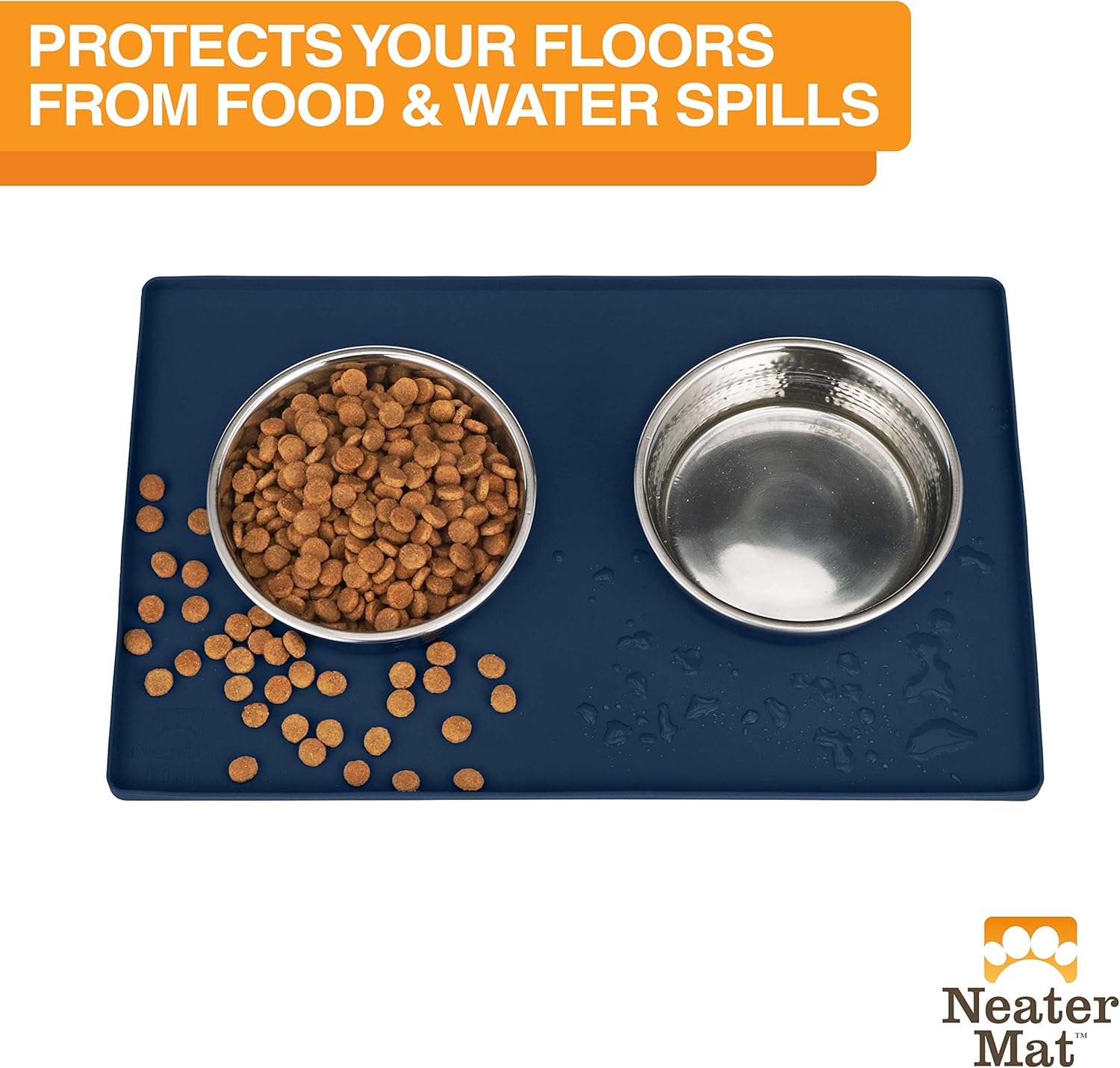 Neater Pet Brands Neater Mat Pet Mats for Food and Water, Cat & Dog Bowl Mat Waterproof Silicone, Feeding Tray, Dog Food Mats for Floors, Placemat w/Raised Edge for Under Bowls, 16” x 10”, Dark Blue