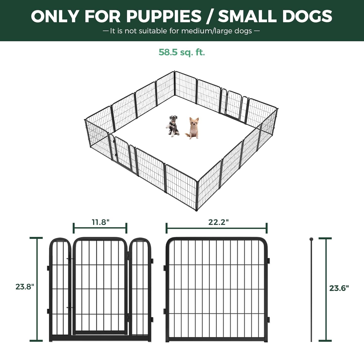 FXW Homeplus Unleashed Indoor Dog Playpen - Stress-Free and Safe Play, Heavy Duty 24 Inch 16 Wire Panels Dog Pen for Puppy and Small Dogs, Black│Patented