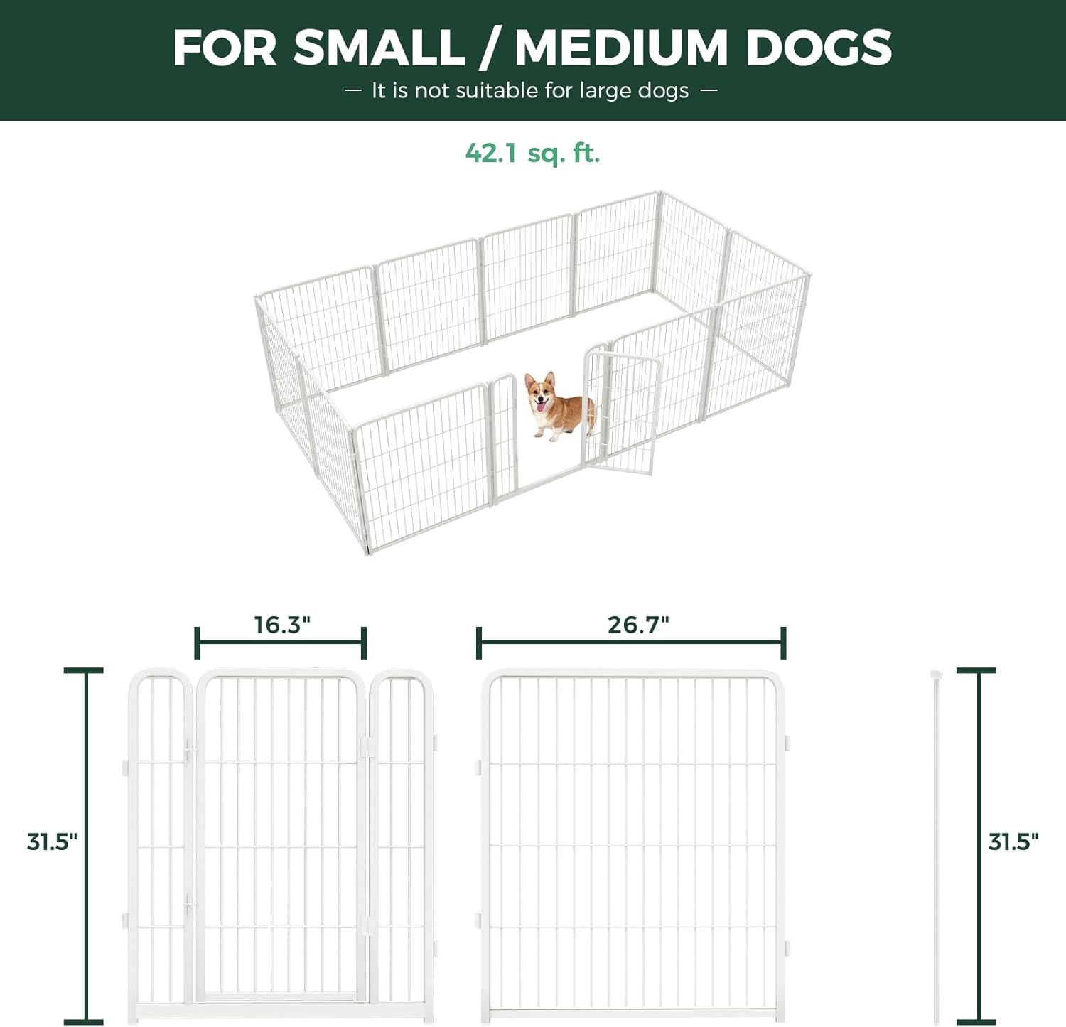 FXW Homeplus Unleashed Indoor Dog Playpen - Stress-Free and Safe Play, Heavy Duty 32 Inch 12 Wire Panels Dog Pen for Small and Medium Dogs, White│Patented