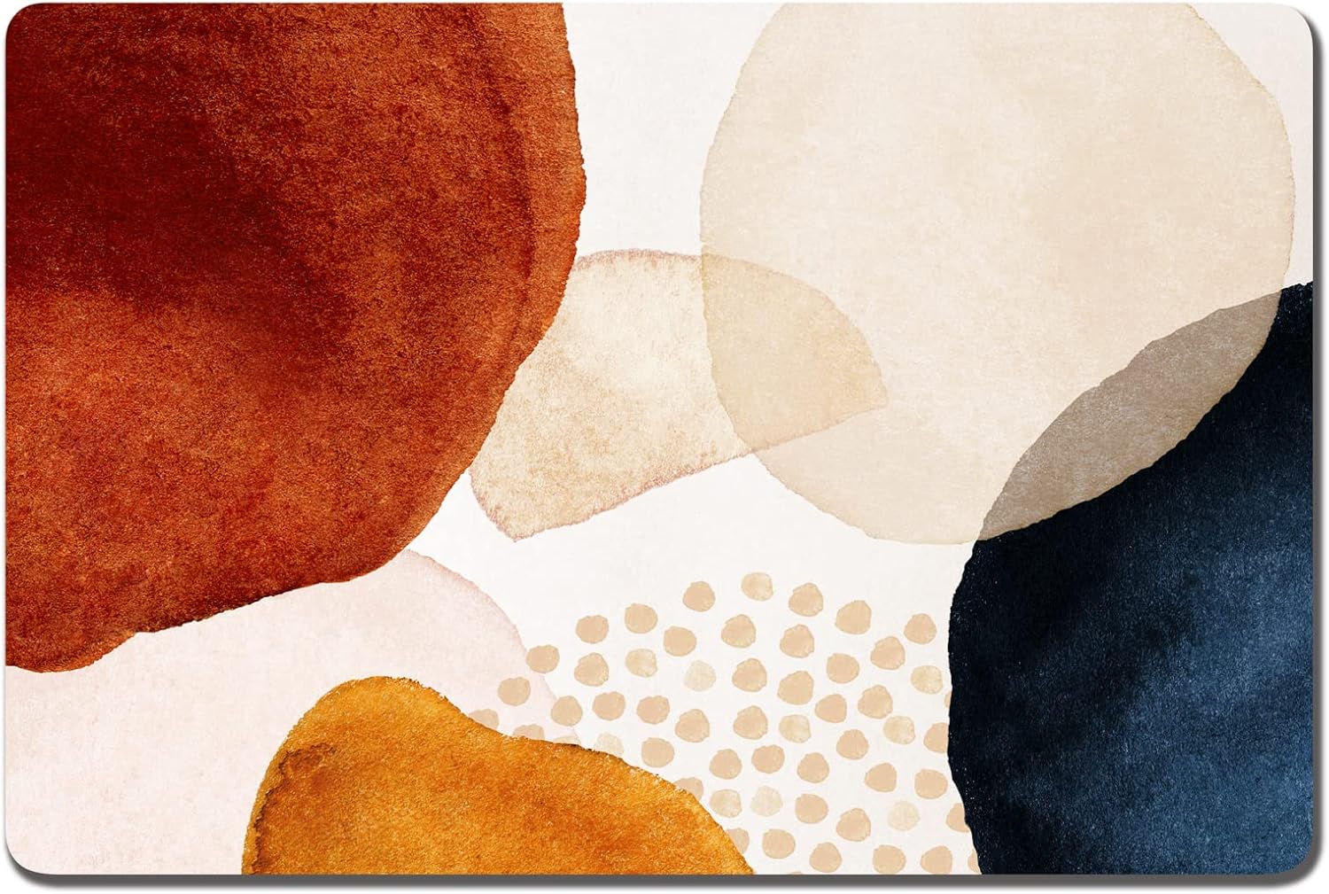 Rnivvi Dog Food Mat, 12" x 19" Absorbent Dog Cat Bowl Mat for Food and Water, Cute Anti-Slip Rubber Pet Feeding Rug Protect Floors, Puppy Placemat for Feeding & Watering Supplies, Abstract Stones