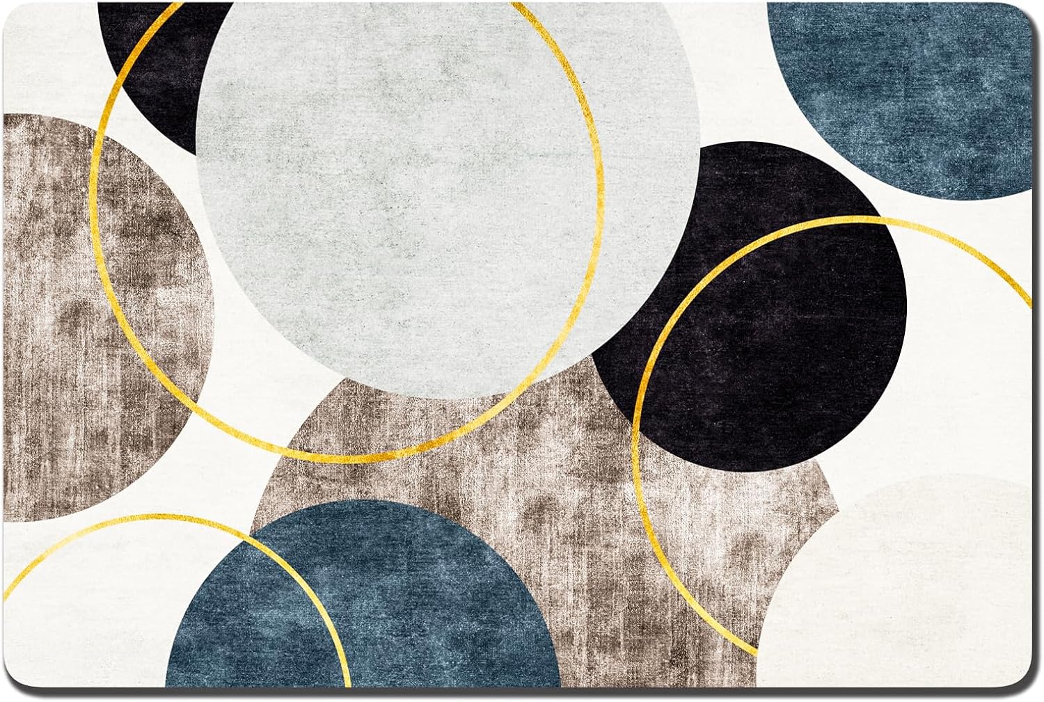Rnivvi Dog Food Mat, 16" x 24" Boho Absorbent Dog Cat Bowl Mat for Food and Water, Cute Anti-Slip Rubber Pet Feeding Rug Protect Floors, Puppy Placemat for Feeding & Watering Supplies, Abstract Circle