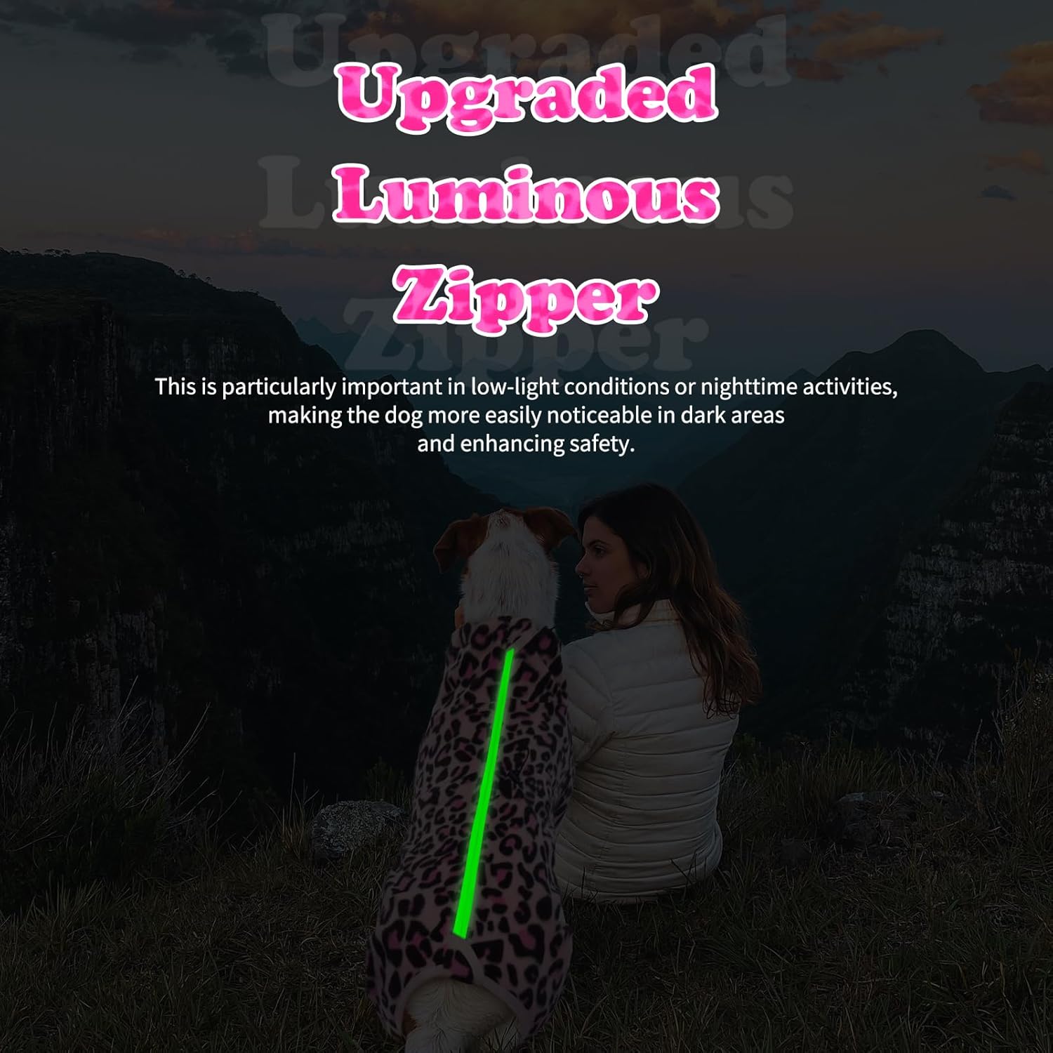 ROZKITCH Fleece Small Dog Pajamas, Pet Windproof Warm Cold Weather Jacket Vest with Luminous Zipper, Jumpsuit Apparel Outfit Clothes for Small Medium Large Dog L-Pink XS