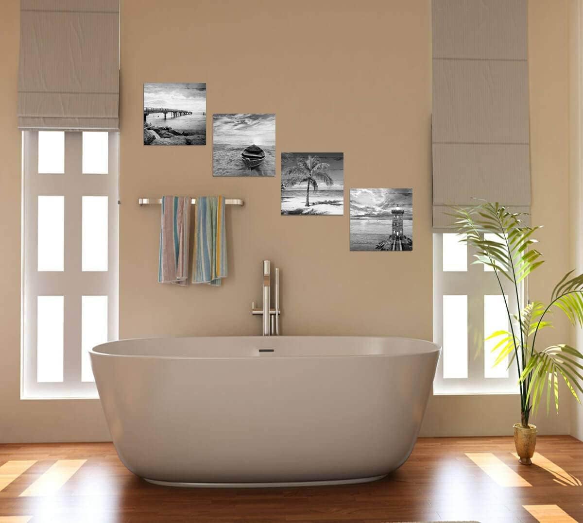 - Black and white beach artwork for walls SIZE:12"x12"x4pcs (30x30cmx4pcs)