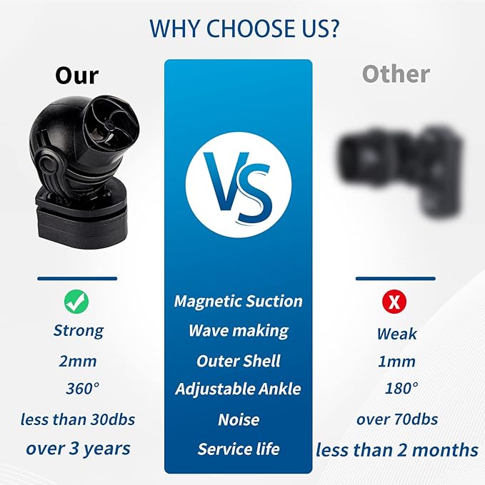 - Strong magnetic suction base: The aquarium circulation pump uses a strong magnetic bracket and suction base, making the adsorption more stable. The stable magnetic base reduces noise and is easy to install on any position of the fish tank wall