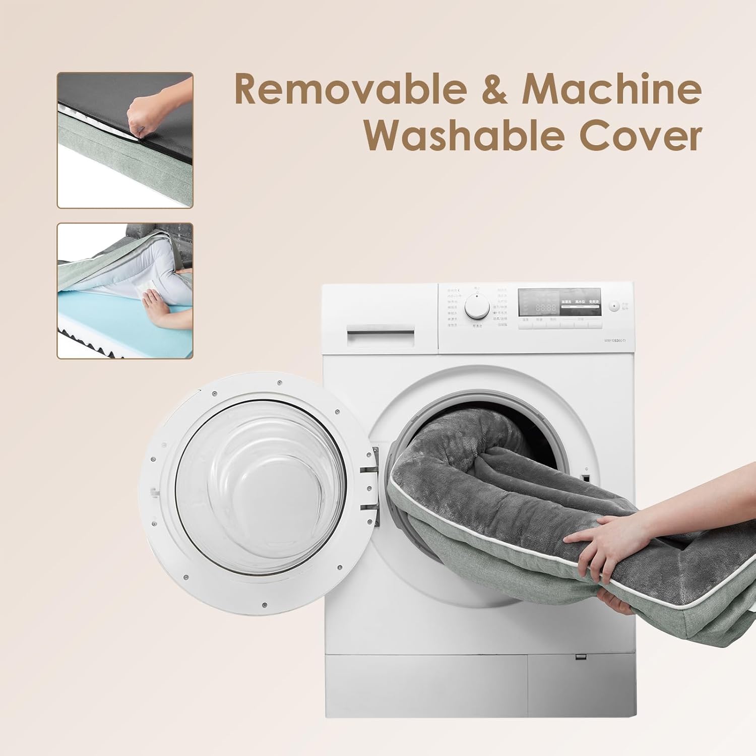 - CARE INSTRUCTIONS: Our dog bed features a removable and washable cover with a zipper closure, making it easy to clean. Remove the foam insert, and the cover can be washed in a machine. Please note that the foam insert is not washable. Allow the bed to expand for 24-48 hours after unpacking.