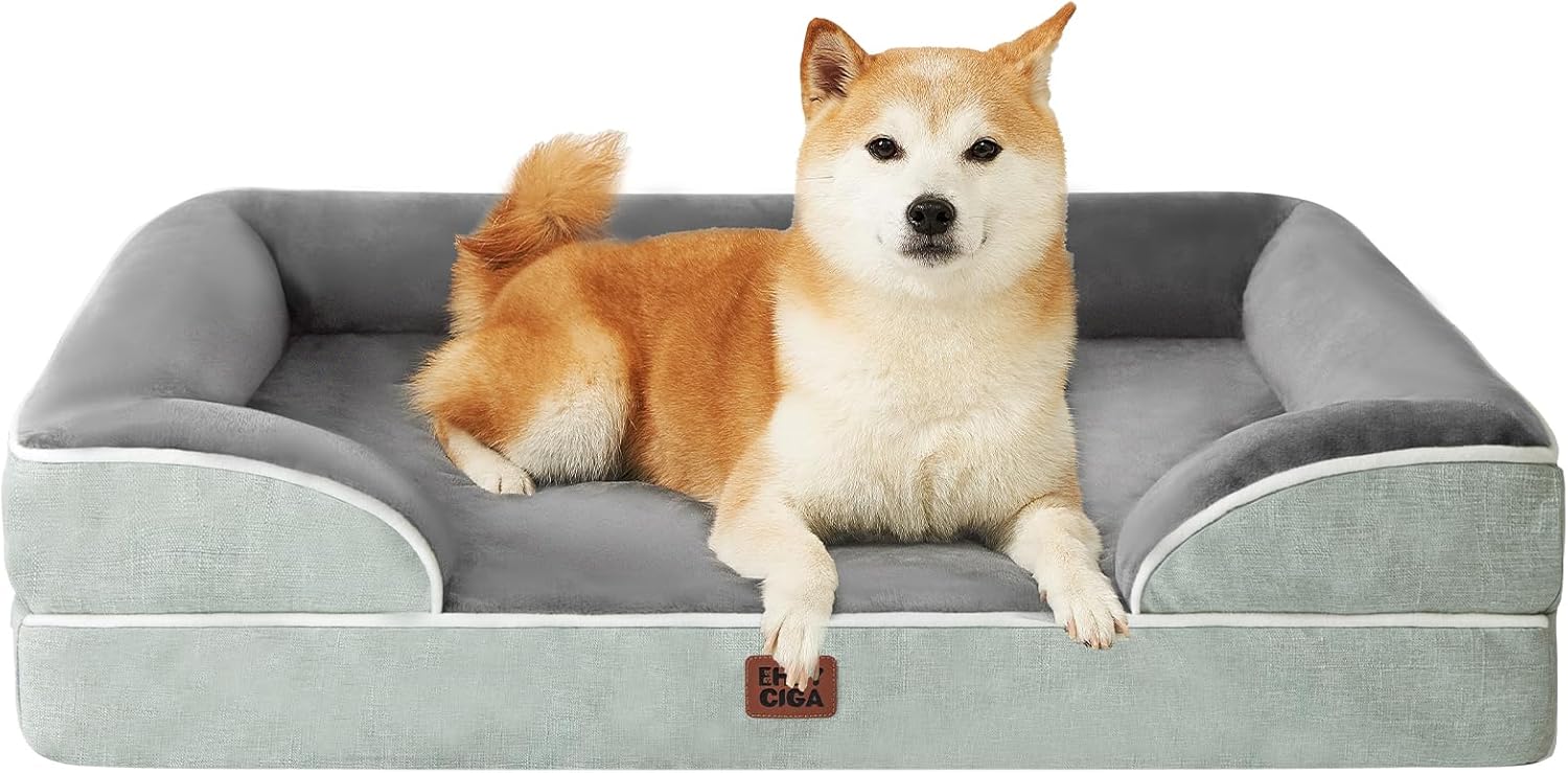 - MEMORY FOAM: The EHEYCIGA orthopedic dog bed features memory foam and egg crate foam to provide even support and pressure relief. It offers a good balance of softness and support, making it particularly suitable for elderly dogs to alleviate joint pressure.