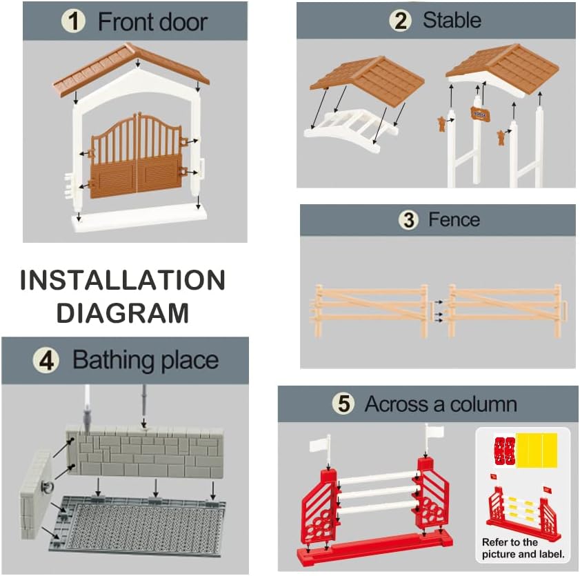 - Safe Material : Safe First!Horse stable playset are made of environmental PVC, non-toxic, durable and washable. ASTM/EN71/CPSIA approved. Suitable for children aged 3-12. Warm Tips - Include SMALL pieces, kids under 3 please play under adult supervision.