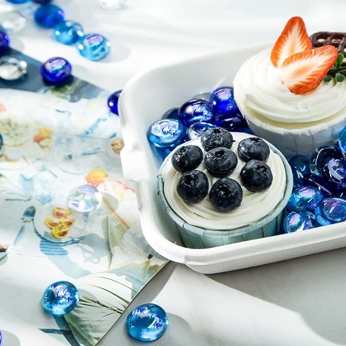 - Widely Used - Our blue mixed sparkling glass nuggets are not only perfect as vase filler, but also can be decorated the hydroponics plants. ideal decorations for home, table, DIY crafts, fireplace, fish tank, frozen party, ocean theme party, etc.