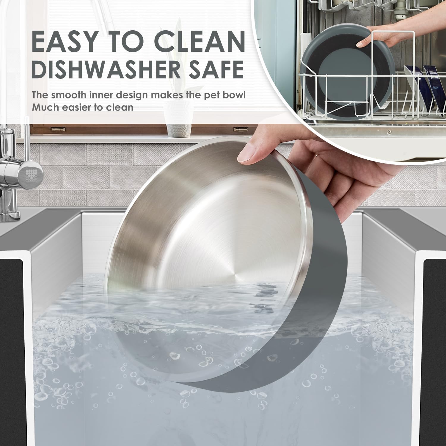 - 💓【Safety Design】Pet feeding bowl adopts mirror polishing process, which has an elegant look and smooth touch. The flat edges will not hurt the dog's tongue, rust-proof and easy to clean.