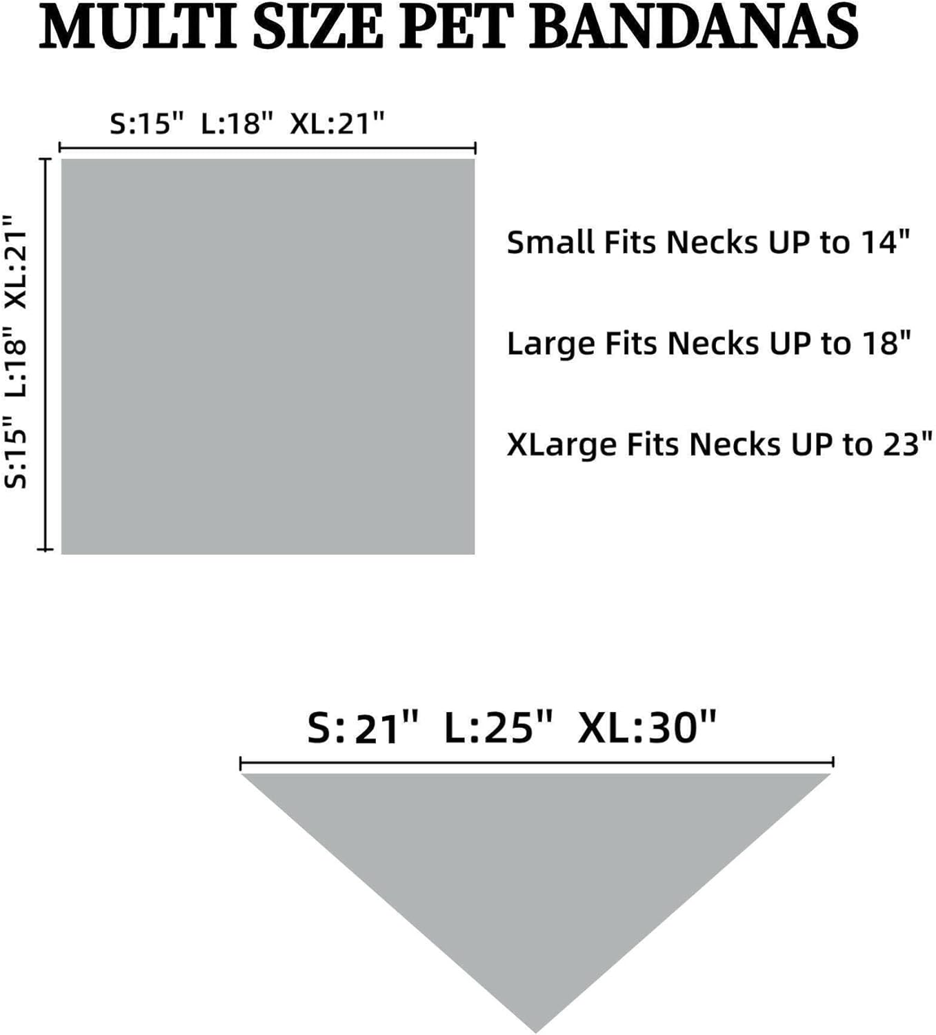 - Adjustable Size: 15*15inches Small fits necks up to 14". 18*18inches Large fits necks up to 18". 21*21inches Xlarge fits necks up to 23". Please measure your pet's neck and leave room to tie knot.