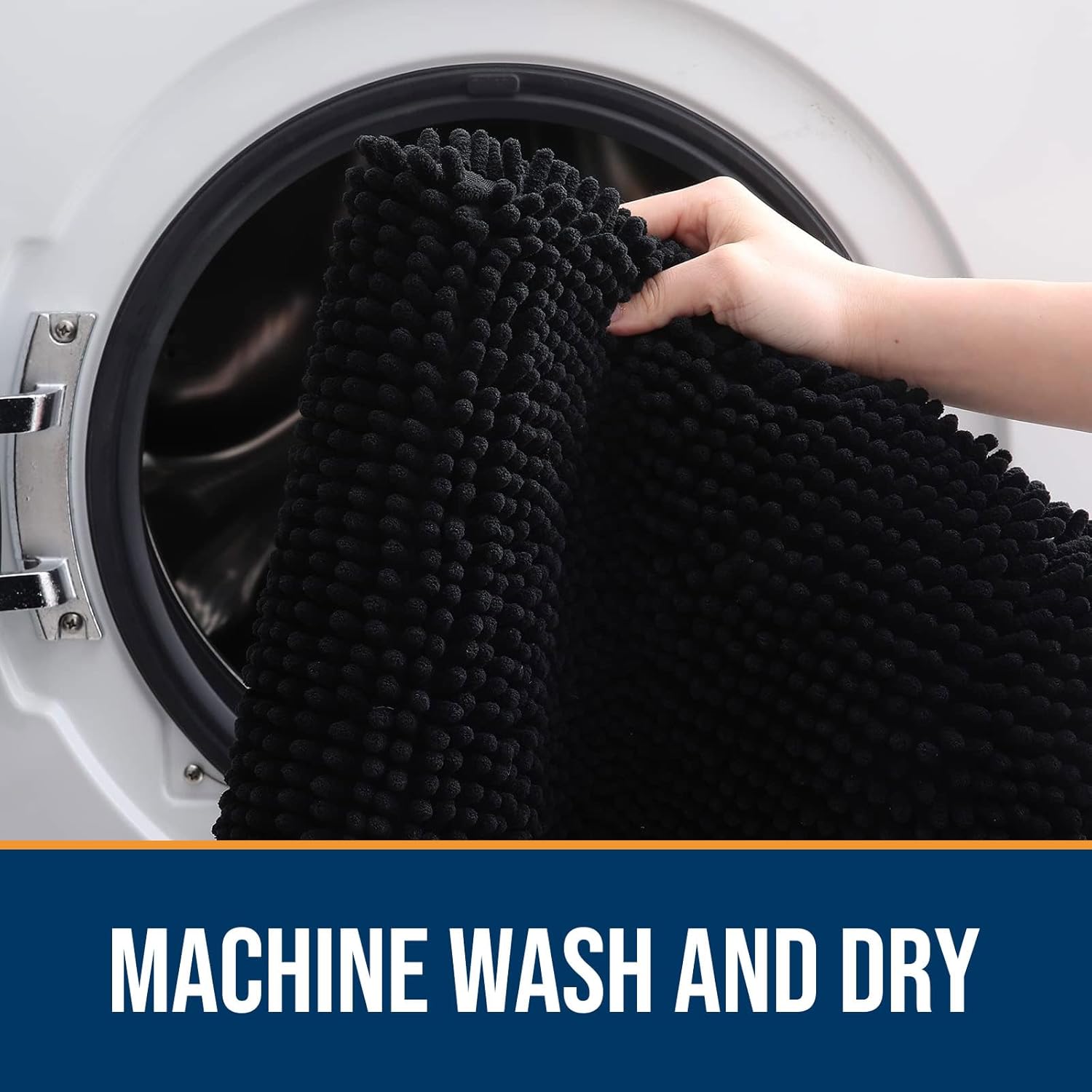 OLANLY Dog Door Mat for Muddy Paws 59x24, Absorbs Moisture and Dirt, Absorbent Non-Slip Washable Doormat, Quick Dry Chenille Mud Mat for Dogs, Entry Indoor Entryway Carpet for Inside Floor, Black