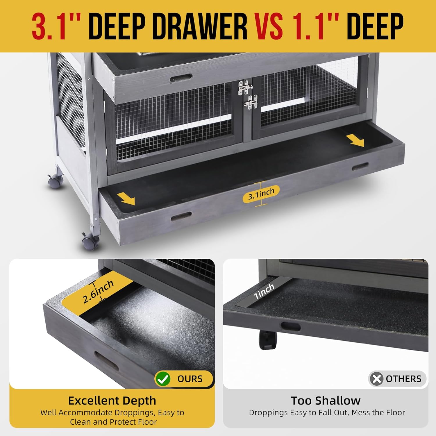 - 【Superb Mobility & Easy Access】On 4 lockable wheels, this bunny hutch is easy to move into private area when you have company or move it outside to get some sun. All doors with metal latch on front are openable and entire top can raise up on strong hinge for easy access