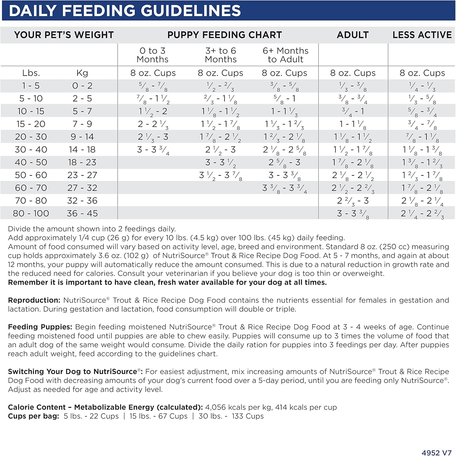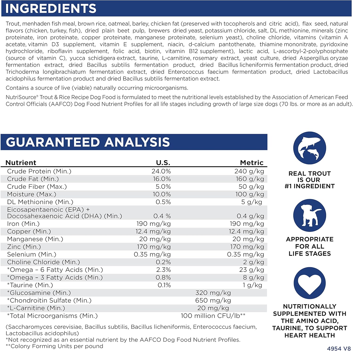 - As a member of our grain inclusive series, NutriSource Trout and Rice Dry Dog Food is formulated to meet AAFCO guidelines for all lifestages