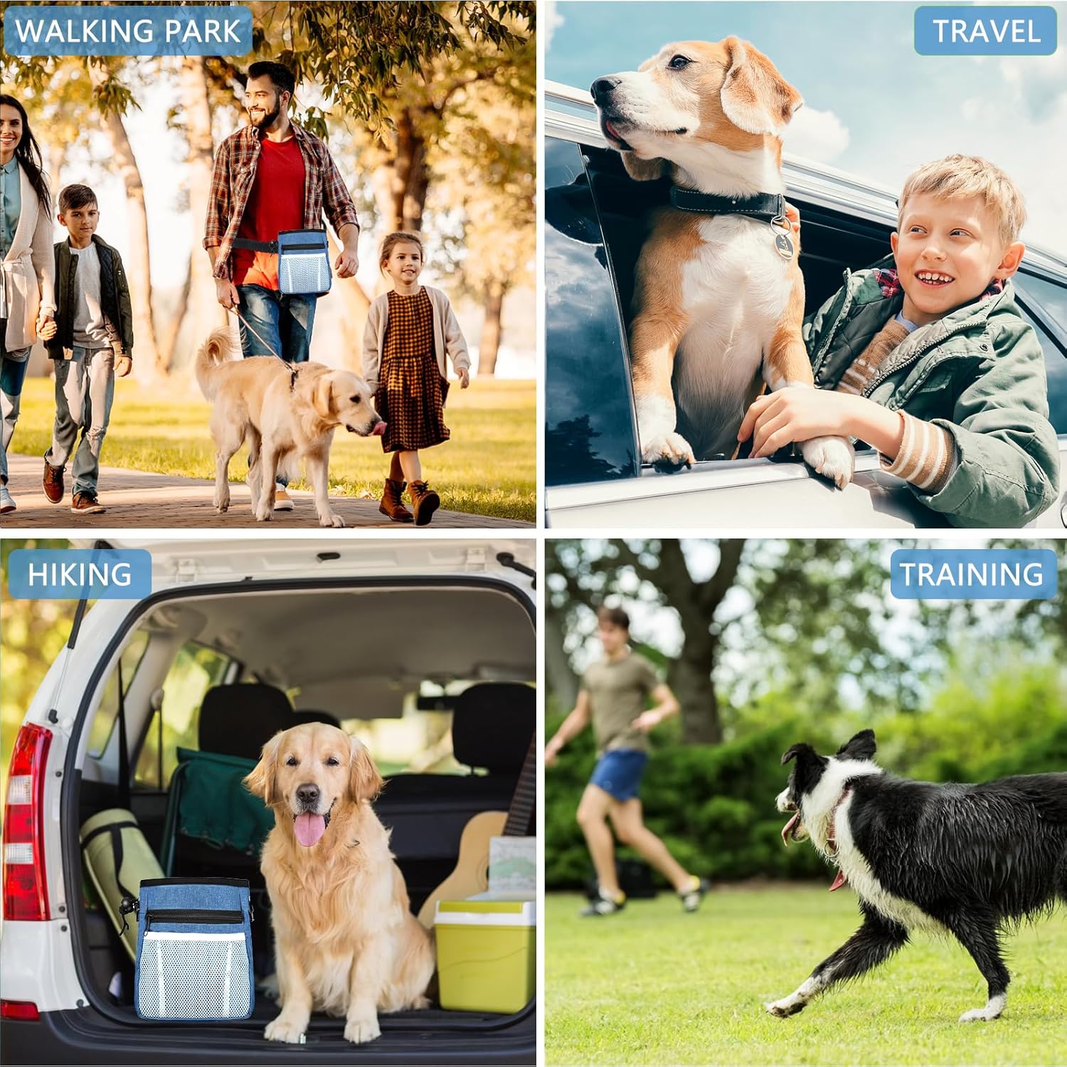 - Multi-Function Treat Pouches for Pet Training — The dog treat pouch can easily store kibble, toys, treats, poop bag and your personal belongings, such as phone, keys, wallet and so on. The D-rings can be used to hang dog clicker training kit or dog cups. The dog treat pouch keeps your hands free. Perfect for dog training at the park!