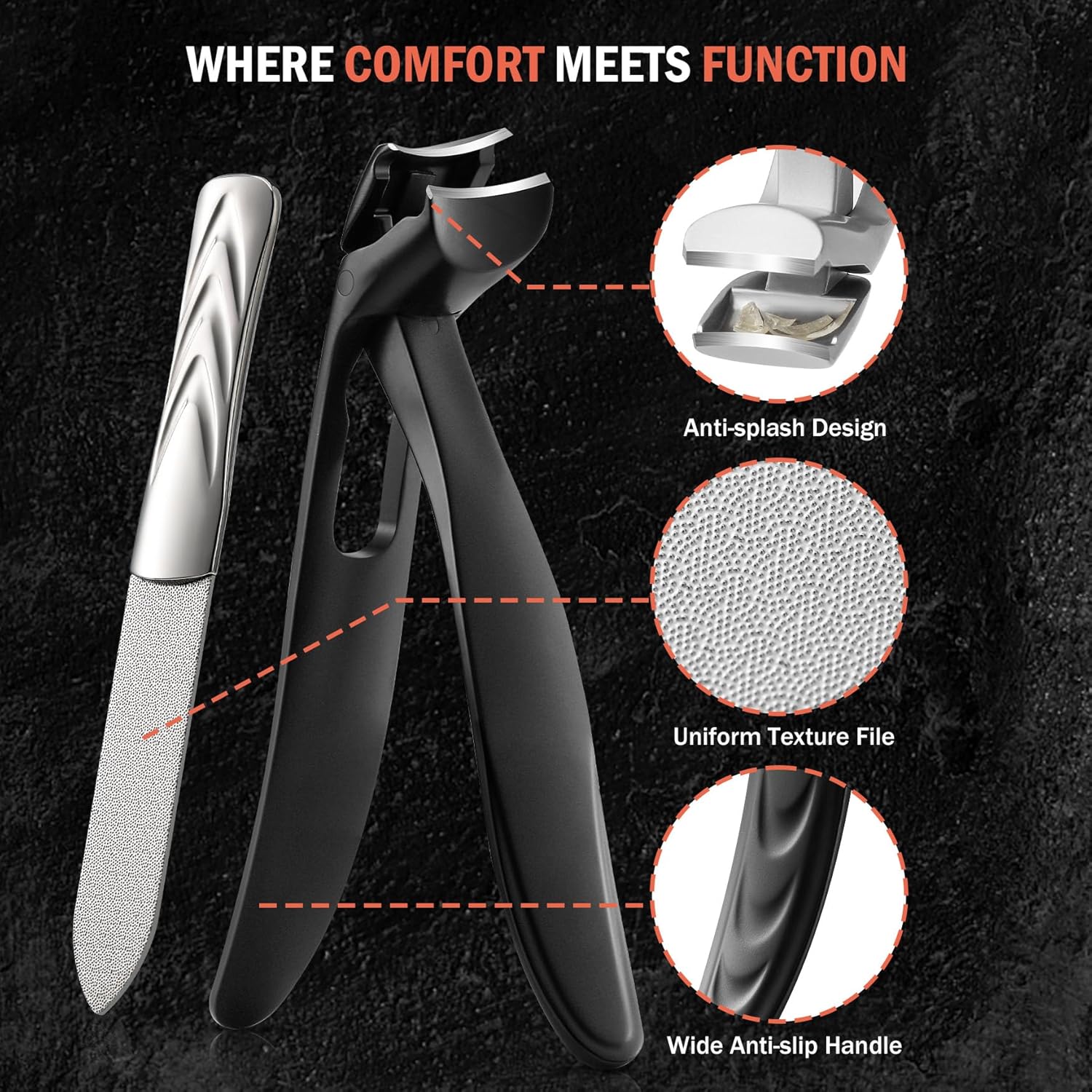 - 🏥LESS BENDING, MORE COMFORT - We understand the importance of comfort and convenience, especially for elderly individuals. Our ergonomic toenail clipper for seniors fits comfortably in your hand, ensuring a secure grip and reducing strain on your wrist. With this thick nail clipper's innovative angled head bionics design, you no longer need to contort your body just to cut your toenails.