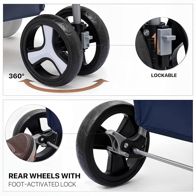 - Advanced Braking System - The two rear wheels of our pet stroller are equipped with brake protection devices, so you can park your stroller safely and securely even on inclined surfaces.