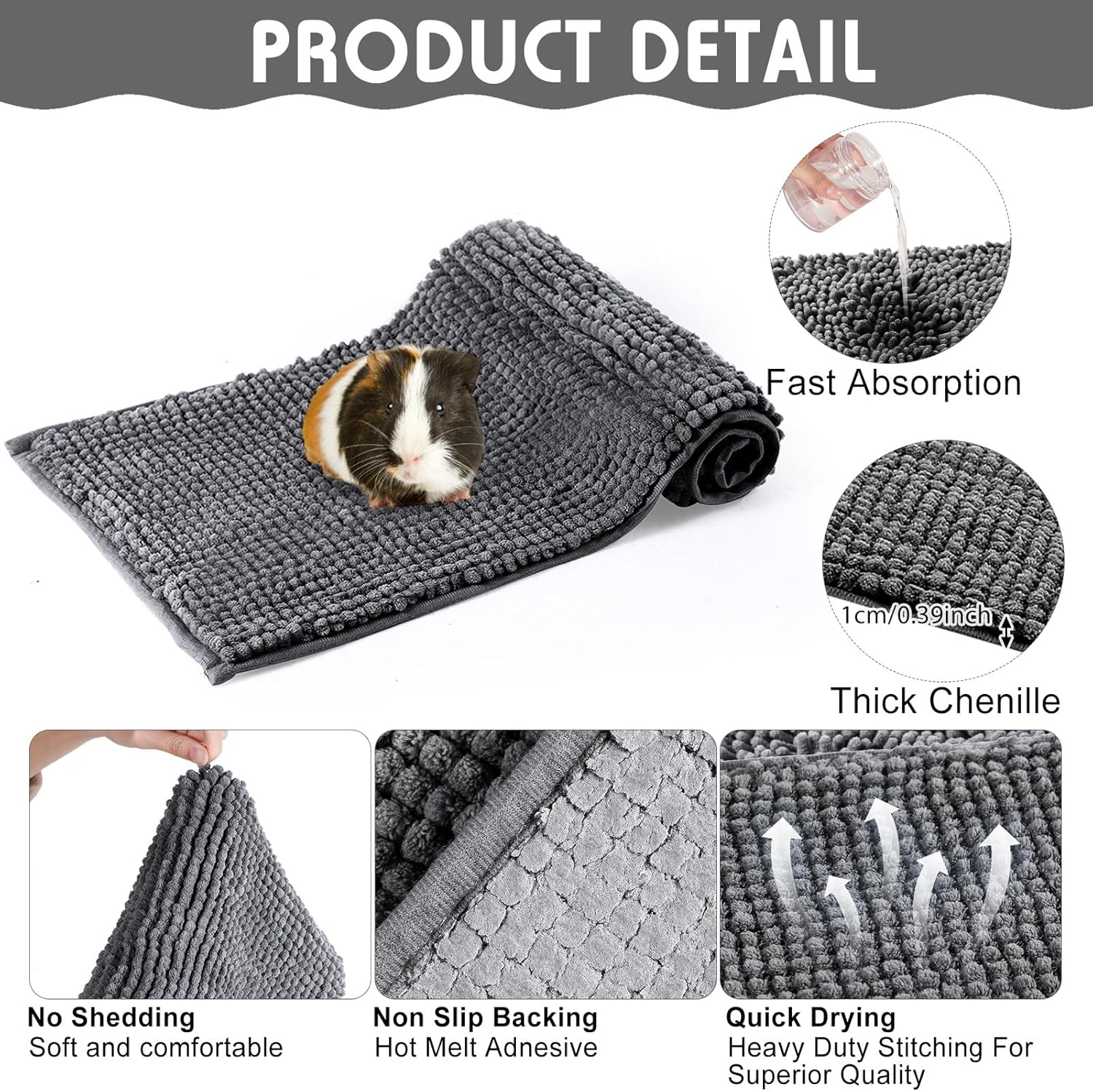 - Absorbent Material: our guinea pig pee pads washable are made of microfiber chenille material, with good density and instant water absorption, which can automatically absorb the water carried by the guinea pig and keep your small pet clean, dry and comfortable