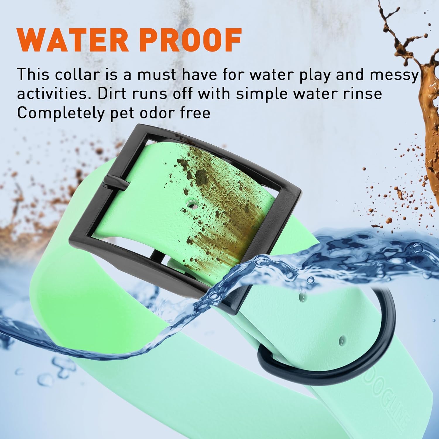 - Free Your Dog to romp in puddles and retrieve from lakes with the Dogline Biothane Waterproof Dog Collar. This water-repellent collar stays dry and odor-free, without shrinking or losing flexibility.