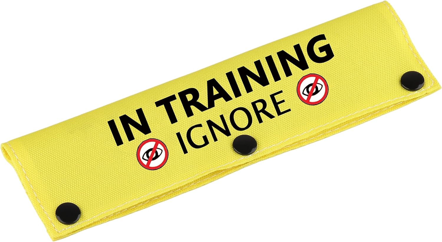 BLUPARK Funny Dog Leash Sleeve Have In Training Ignore Dog Leash Wrap Wrap Alert Hanging ID Patch Tag Pet Birthday Gift (Training Ignore-YE Sleeve)