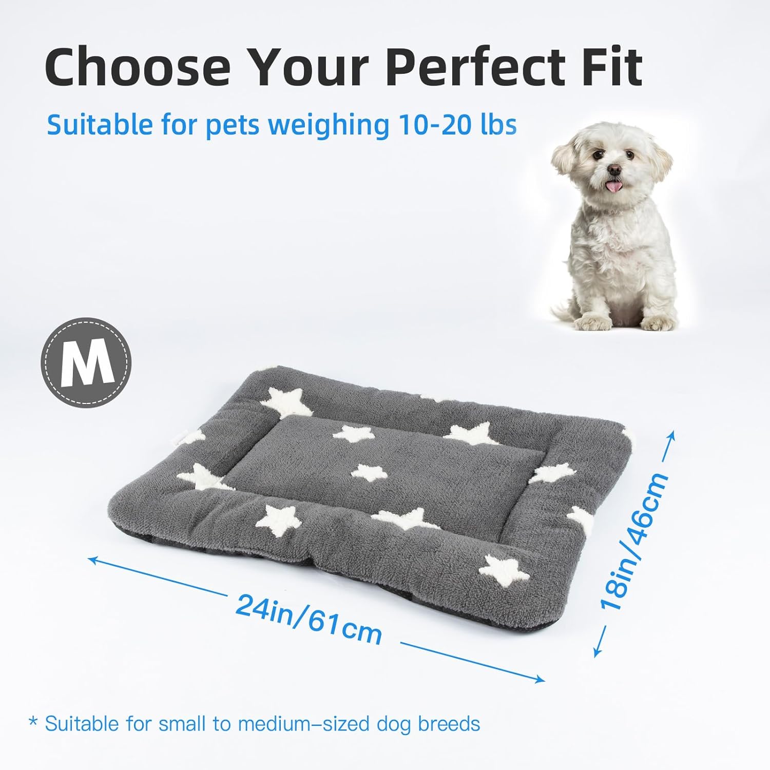 Mora Pets Dog Crate Pad Kennel Bed Crate Mat for Small Dogs Washable Cute Star Pet Bed for Dog Cage Ultra Soft Flat Puppy Cat Kitten Pillow Cushion for Sleeping Anti-Slip Grey 24 x 18