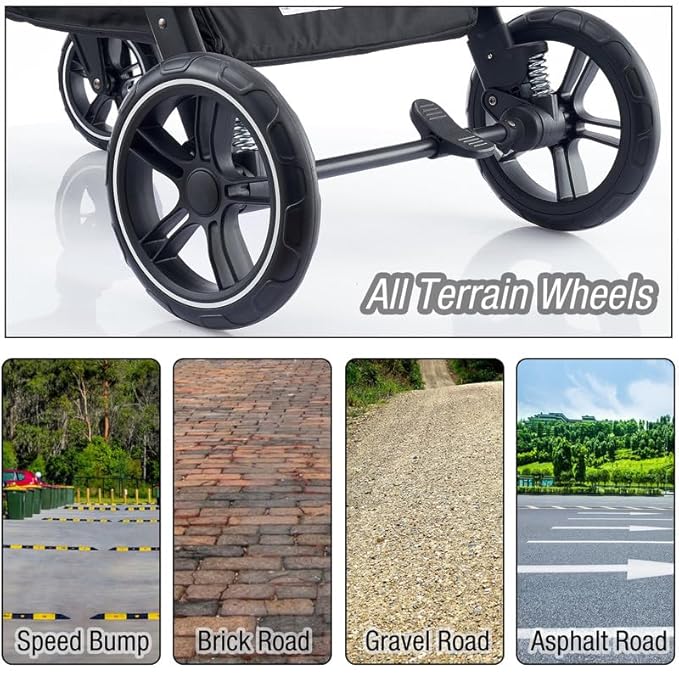 - Smooth Ride: Enjoy smooth and effortless strolls with our pet stroller's reliable performance. The large, sturdy wheels provide stability and easy maneuverability, making it suitable for various terrains, from sidewalks to park paths. For added convenience, we've included brakes to keep the stroller securely in place when you need to make a stop. The ergonomic handlebar ensures a comfortable grip and seamless control, so you can focus on creating unforgettable moments with your beloved pet.