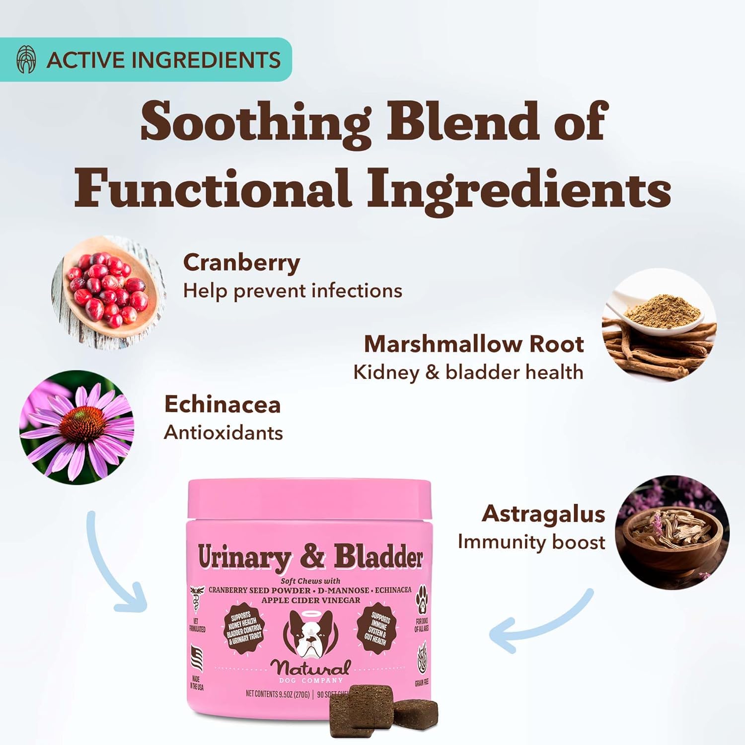 Natural Dog Company Cranberry Supplement for Dogs - Urinary & Bladder Support - D-Mannose for Dog Promotes Bladder Health - Turkey Flavor - Dog UTI Incontinence Supplement - 90 Soft Chews