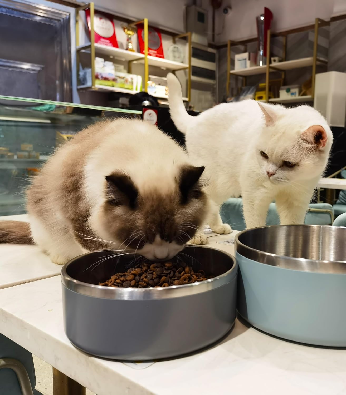 - Anti overturning: Do you still worry about mischievous pets? When you go out, it will flip over the pet water and food bowl, which is really worrying. Our flat bottom anti slip pet bowl design can prevent pets from flipping the bowl