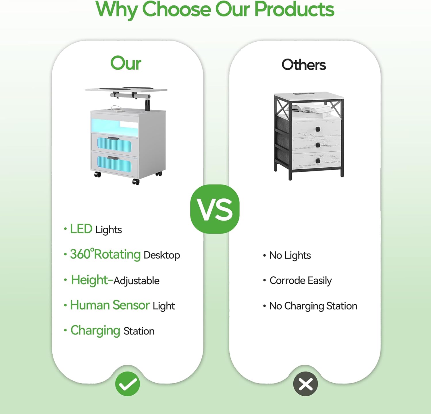 - ✅【Nightstand with Wireless Charging Station】 Bedside table with wireless charging and USB/Type-C charging ports allows you to easily charge your mobile devices, laptops and iPads, making your life easier when you work in bed or on the sofa.
