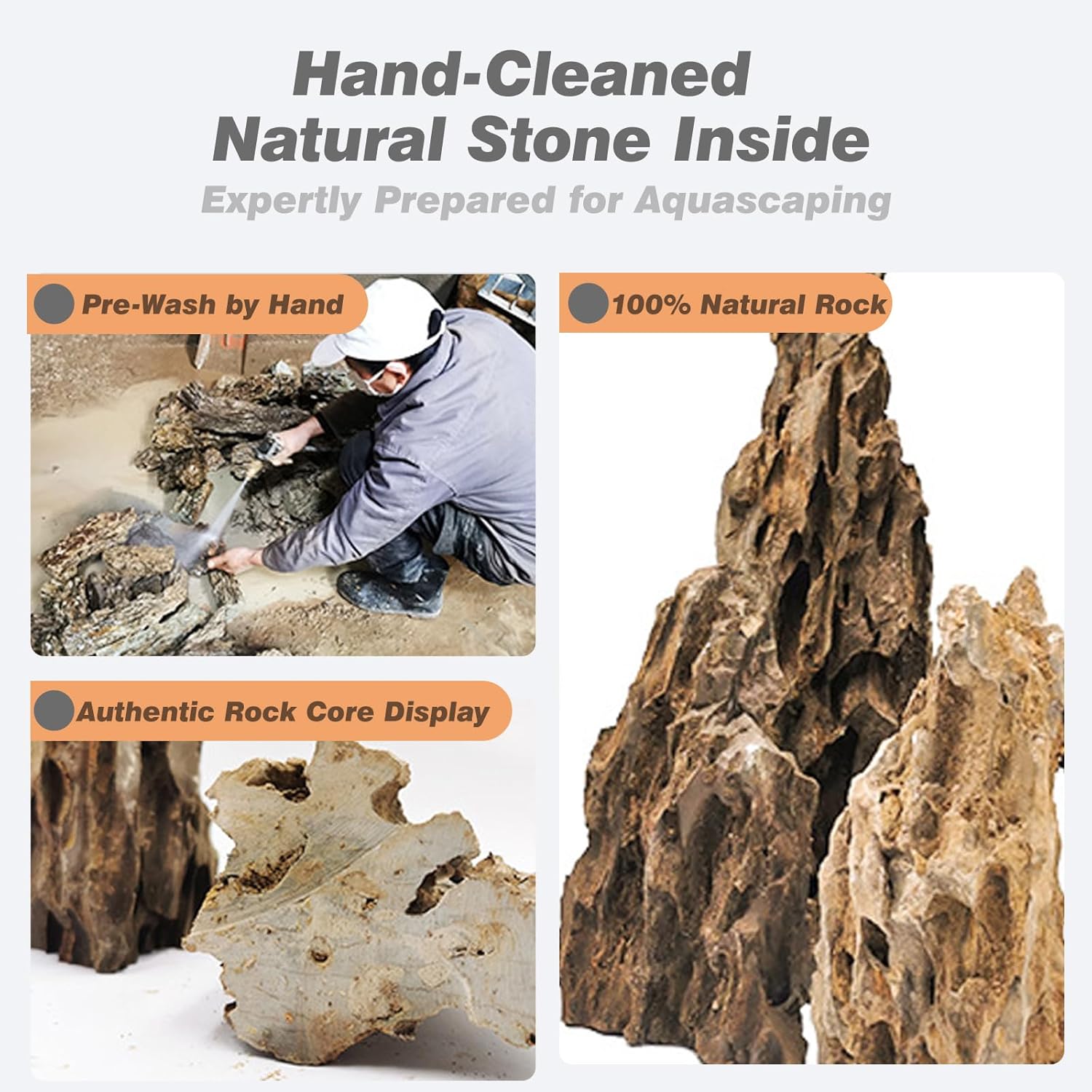 - ⛰Great Gift:Natural rocks for aquarium decoration indoors as well as rockery decoration outdoors, making them an excellent gift for pets. They are not only ideal for aquarium landscaping but also for terrariums and other settings, enhancing the living environment and promoting the healthy growth of fish, turtles, reptiles, and amphibians.