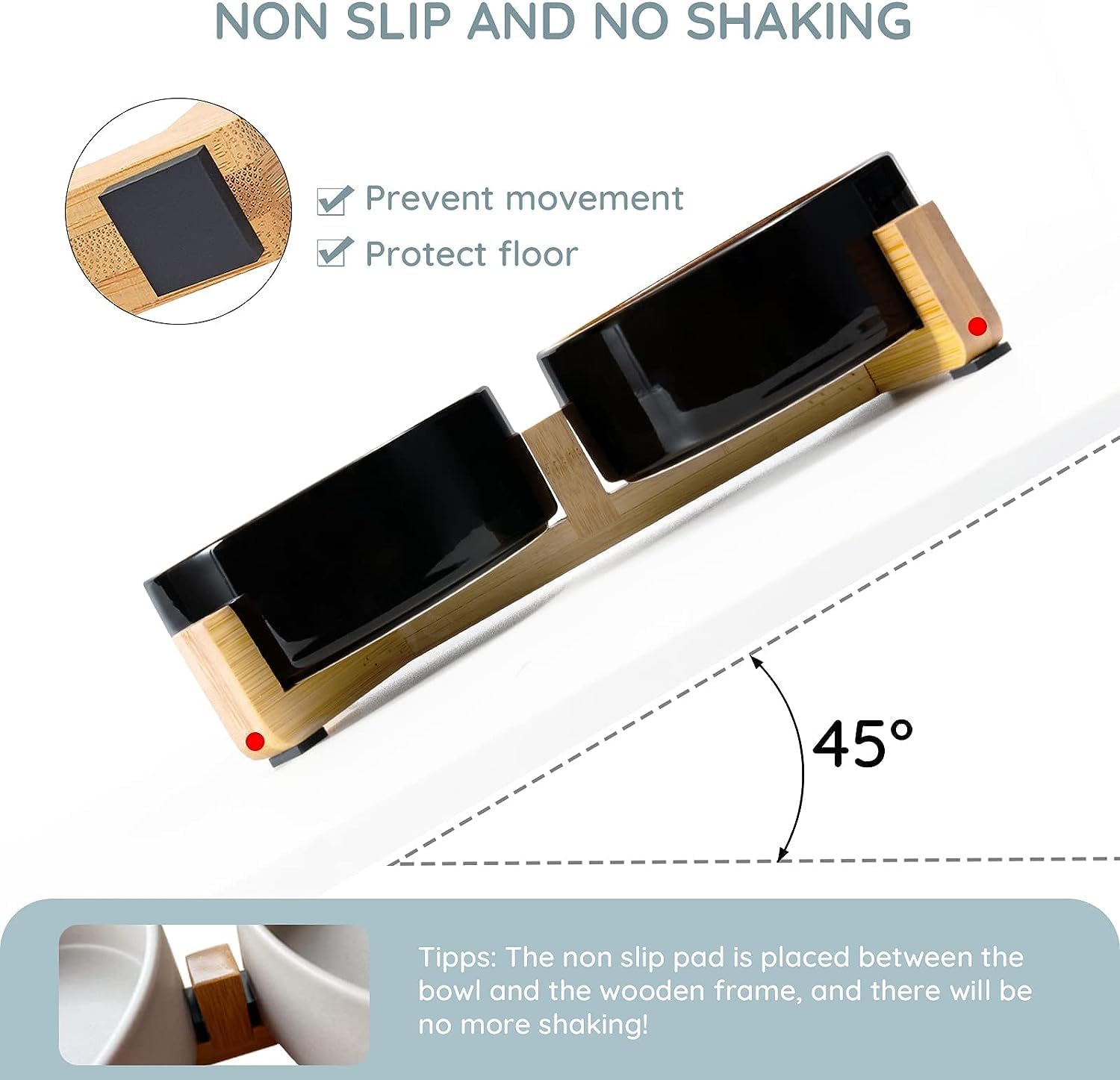 - [Natural Wooden Stand]:Unique wooden stand can effectively prevent food from spilling and keep the floor clean and tidy. Non-Slip bowl base, making it easy to pick up and put down