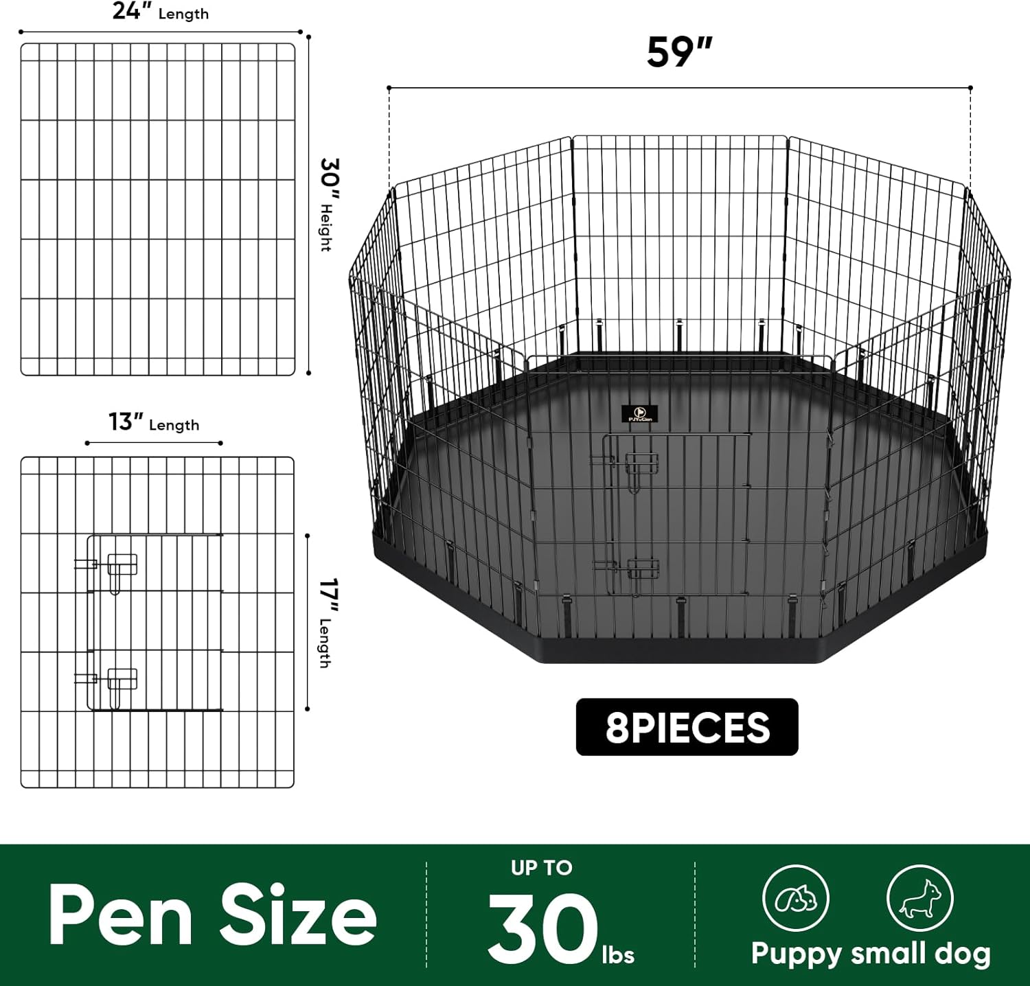 PJYuCien Dog Playpen, 8 Panels 30’’H Dog Pens Indoor with Bottom Pad, Metal Foldable Pet Puppy Exercise Fence Crate Kennel, Better for Small Animals,Black
